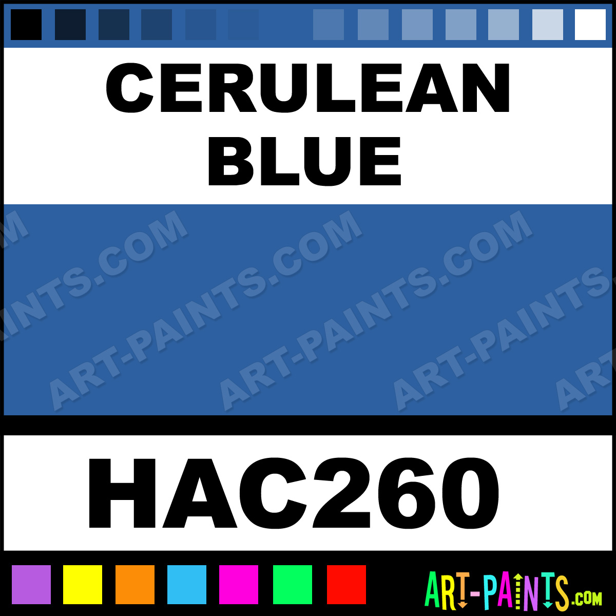 This beautiful Artists Acrylic shade is called Cerulean Blue, and comes from a company called Acryla. Their product number, along with the HTML color code, RGB, and CMYK codes are listed below. This Beautiful Shade of Cerulean Blue and others can be found in the Acryla Artists Art Paint Gallery! Also be sure to browse through the other wonderful Professional Color Galleries to see more of Acryla Artists Acrylic Brand Paints and other Paint Manufacturers. And as always, Paint Paint Paint! -Art-Paints.com