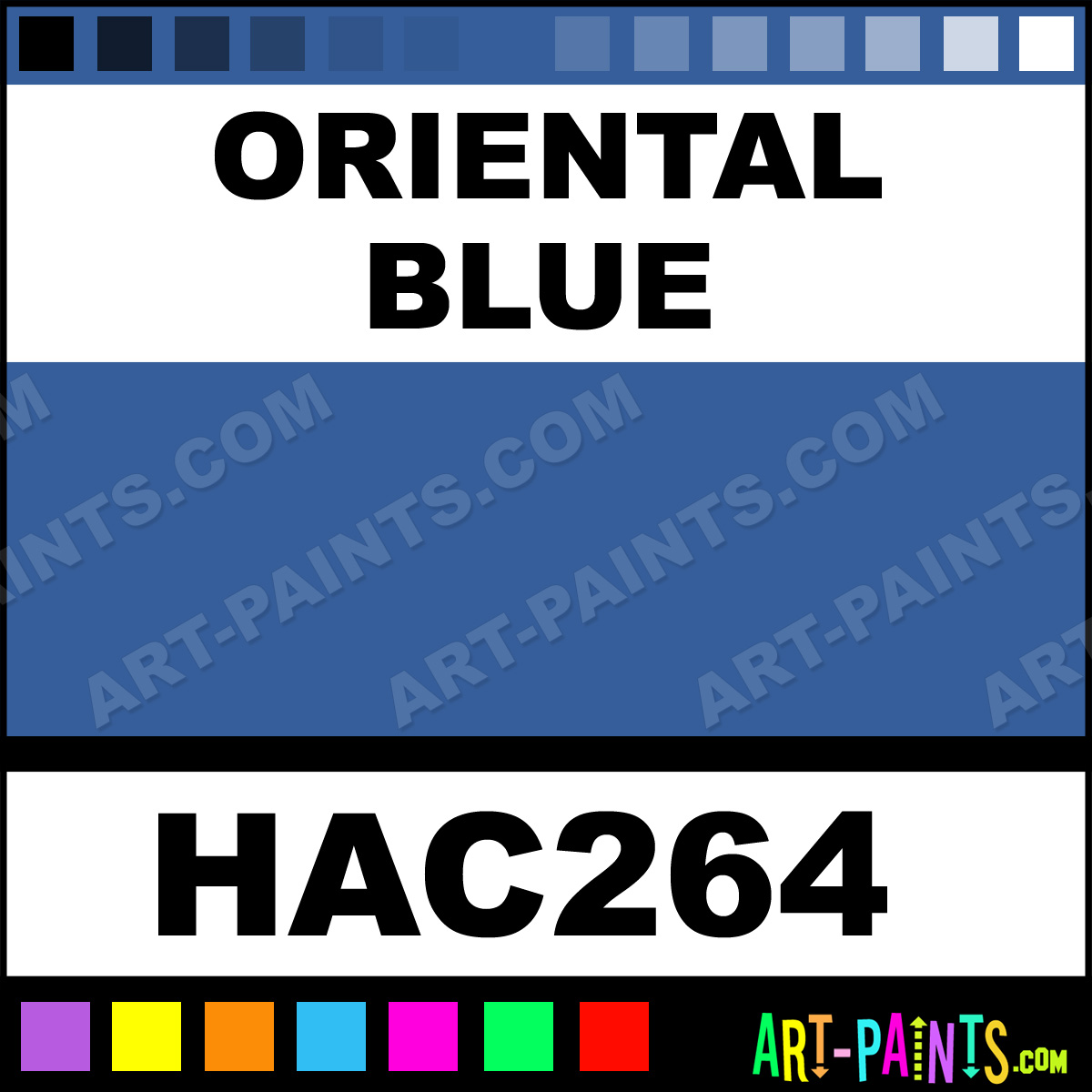 This beautiful Artists Acrylic shade is called Oriental Blue, and comes from a company called Acryla. Their product number, along with the HTML color code, RGB, and CMYK codes are listed below. This Beautiful Shade of Oriental Blue and others can be found in the Acryla Artists Art Paint Gallery! Also be sure to browse through the other wonderful Professional Color Galleries to see more of Acryla Artists Acrylic Brand Paints and other Paint Manufacturers. And as always, Paint Paint Paint! -Art-Paints.com