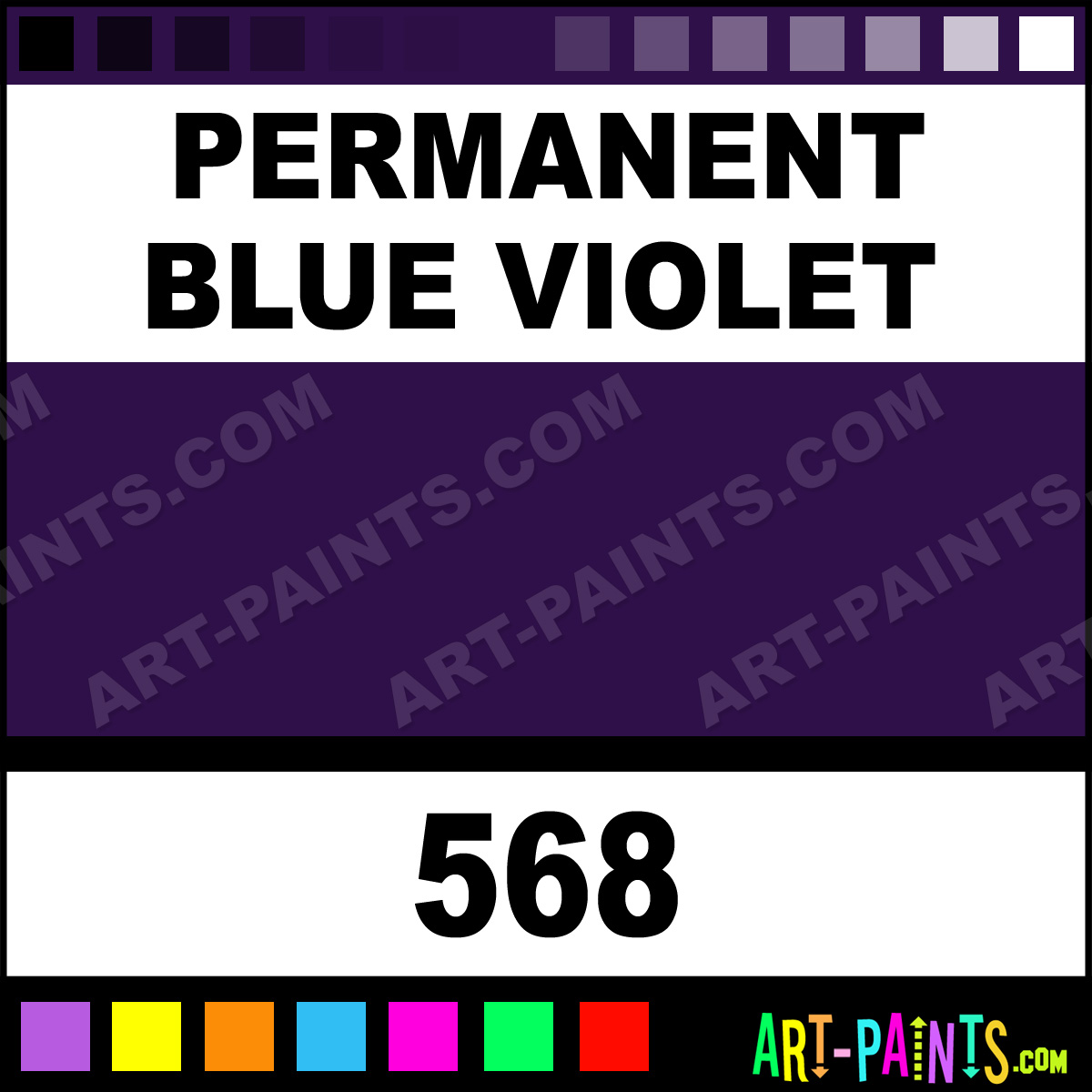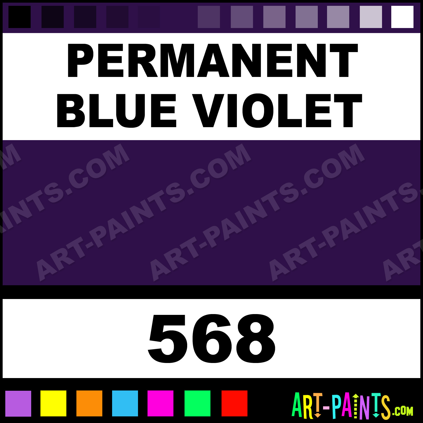 Sky Blue Cobalt Blue Light Ultramarine Ultramarine Permanent Red Violet Permanent Blue Violet Opaque Permanent Violet Opaque Permanent Red Violet Opaque