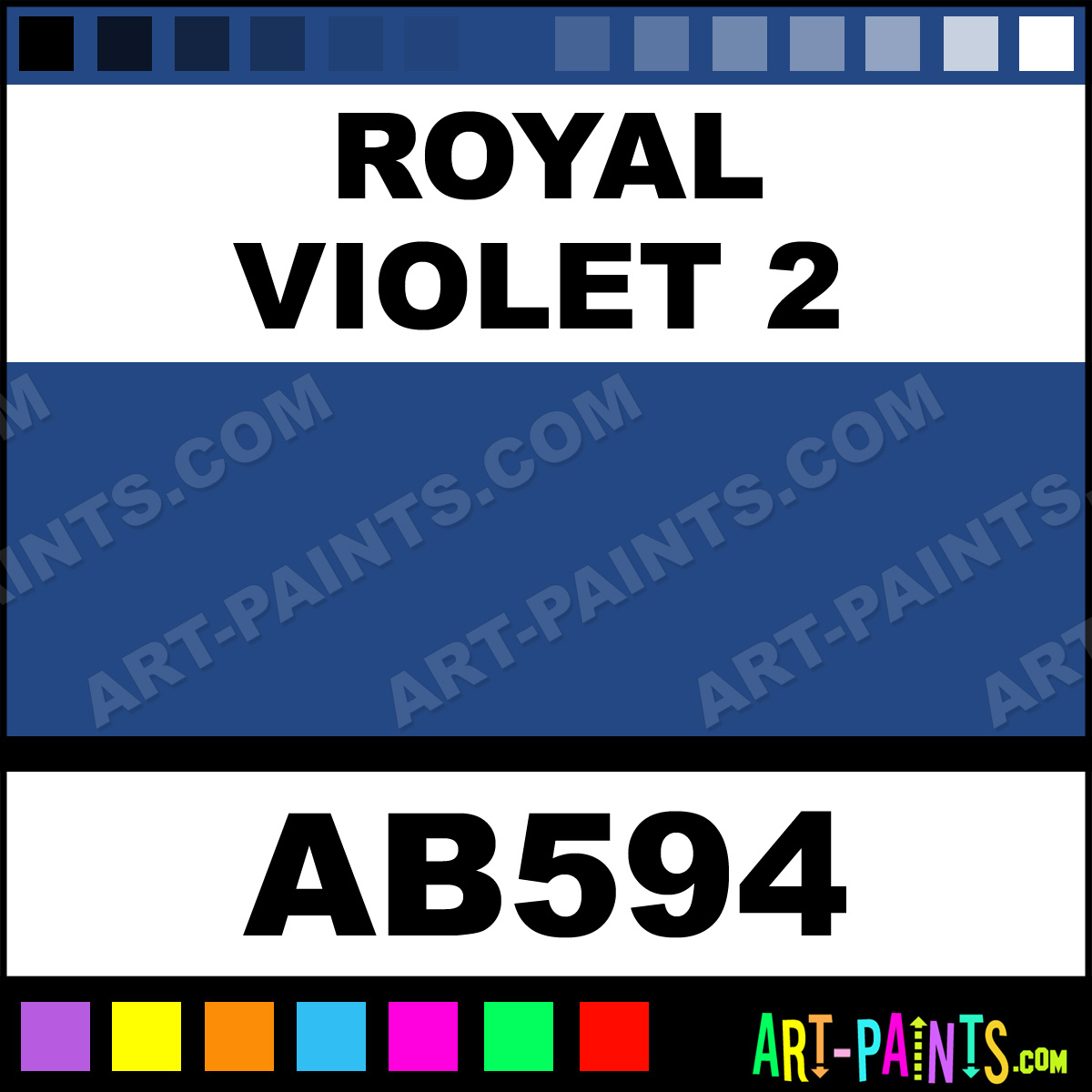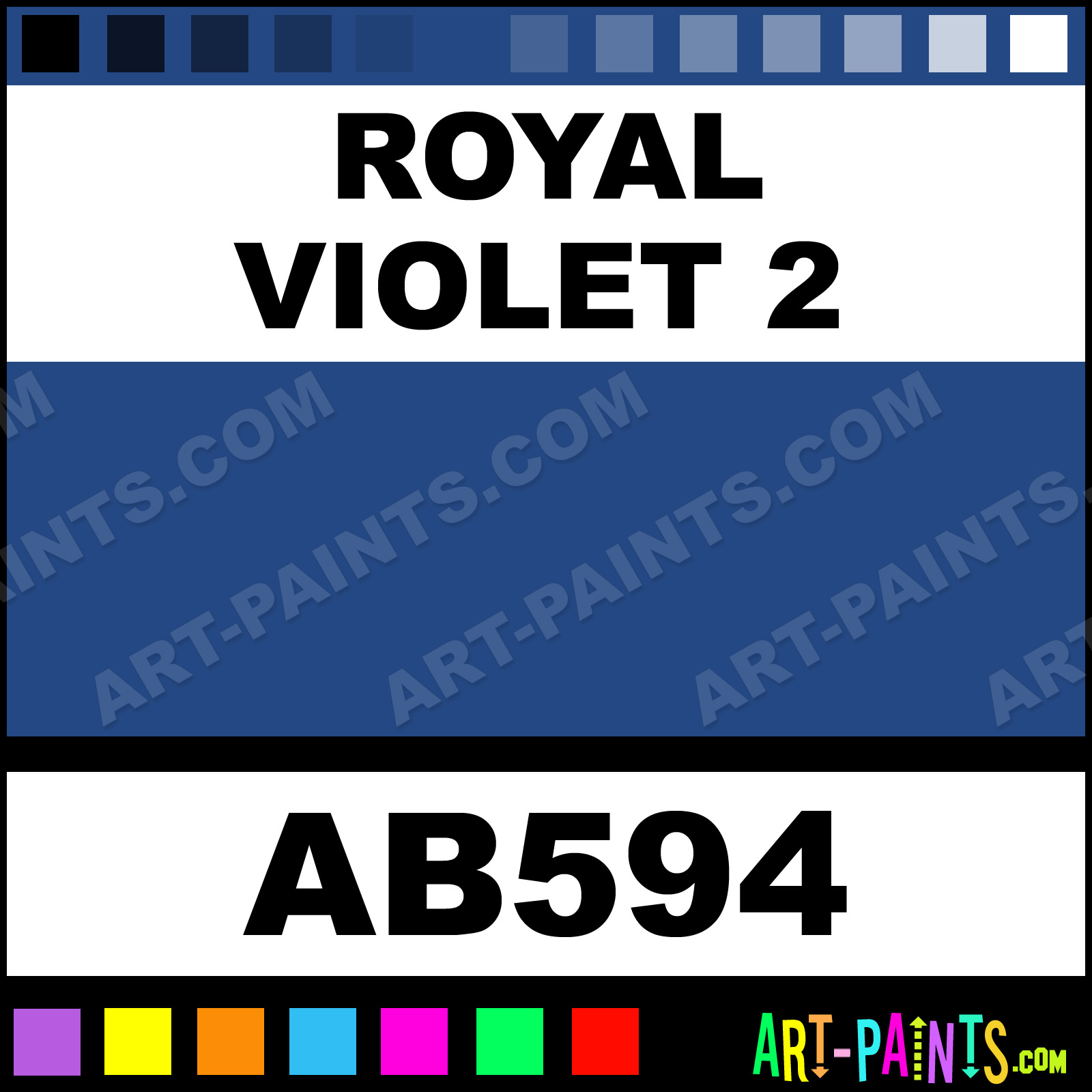 This beautiful Artist Acrylic shade is called Royal Violet 2, and comes from a company called Apple Barrell. Their product number, along with the HTML color code, RGB, and CMYK codes are listed below. This Beautiful Shade of Royal Violet 2 and others can be found in the Apple Barrell Artist Art Paint Gallery! Also be sure to browse through the other wonderful Professional Color Galleries to see more of Apple Barrell Artist Acrylic Brand Paints and other Paint Manufacturers. And as always, Paint Paint Paint! -Art-Paints.com
