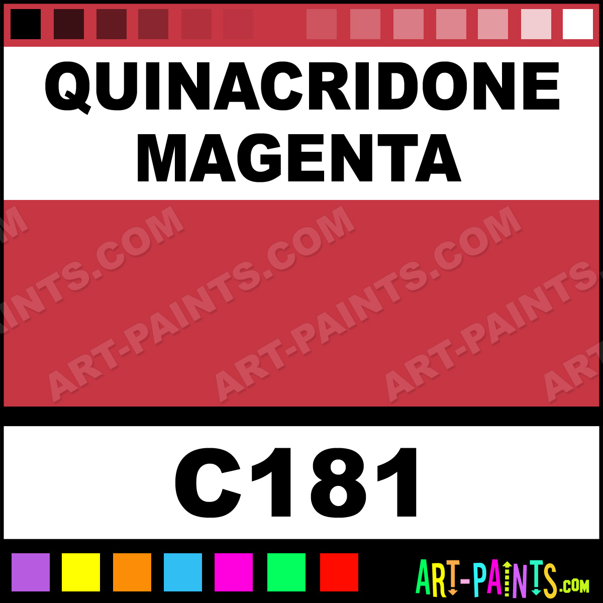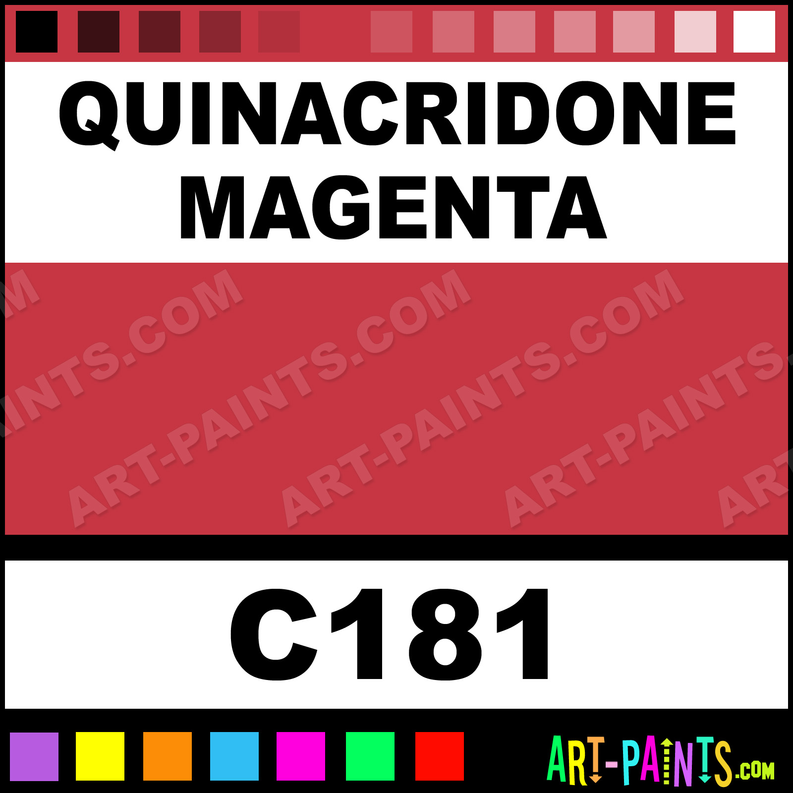 This beautiful Artist Acrylic shade is called Quinacridone Magenta, and comes from a company called Ara Art. Their product number, along with the HTML color code, RGB, and CMYK codes are listed below. This Beautiful Shade of Quinacridone Magenta and others can be found in the Ara Art Artist Art Paint Gallery! Also be sure to browse through the other wonderful Professional Color Galleries to see more of Ara Art Artist Acrylic Brand Paints and other Paint Manufacturers. And as always, Paint Paint Paint! -Art-Paints.com