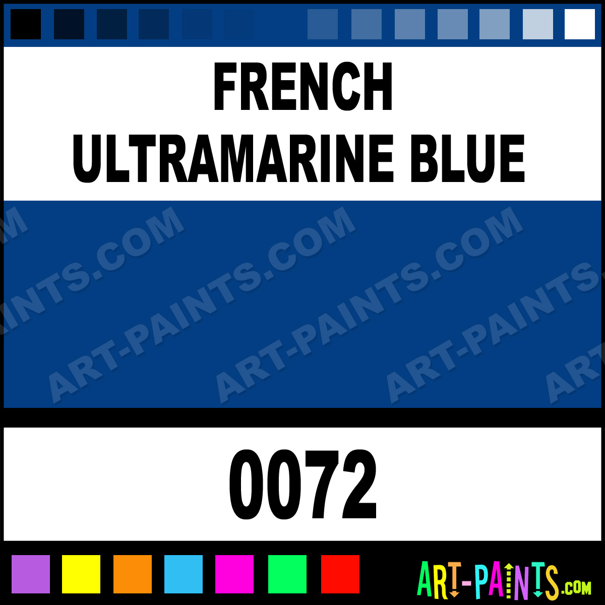 This beautiful Artist Acrylic shade is called French Ultramarine Blue, and comes from a company called Atelier. Their product number, along with the HTML color code, RGB, and CMYK codes are listed below. This Beautiful Shade of French Ultramarine Blue and others can be found in the Atelier Artist Art Paint Gallery! Also be sure to browse through the other wonderful Professional Color Galleries to see more of Atelier Artist Acrylic Brand Paints and other Paint Manufacturers. And as always, Paint Paint Paint! -Art-Paints.com
