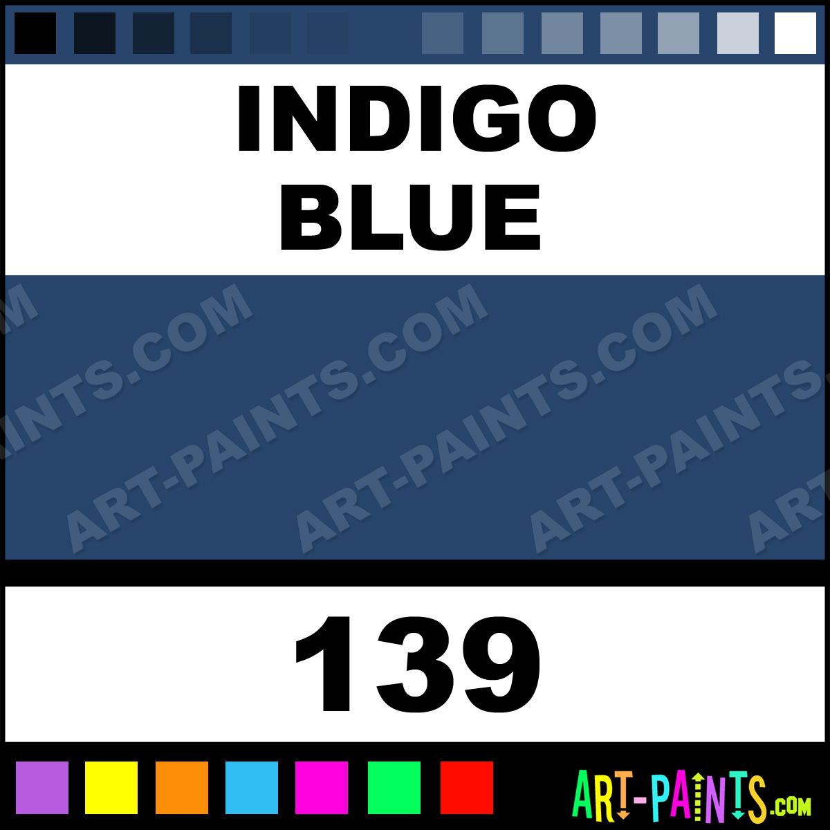 This beautiful Colours Acrylic shade is called Indigo Blue, and comes from a company called Caran D-Ache. Their product number, along with the HTML color code, RGB, and CMYK codes are listed below. This Beautiful Shade of Indigo Blue and others can be found in the Caran D-Ache Colours Art Paint Gallery! Also be sure to browse through the other wonderful Professional Color Galleries to see more of Caran D-Ache Colours Acrylic Brand Paints and other Paint Manufacturers. And as always, Paint Paint Paint! -Art-Paints.com