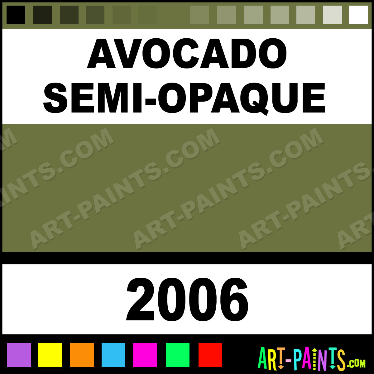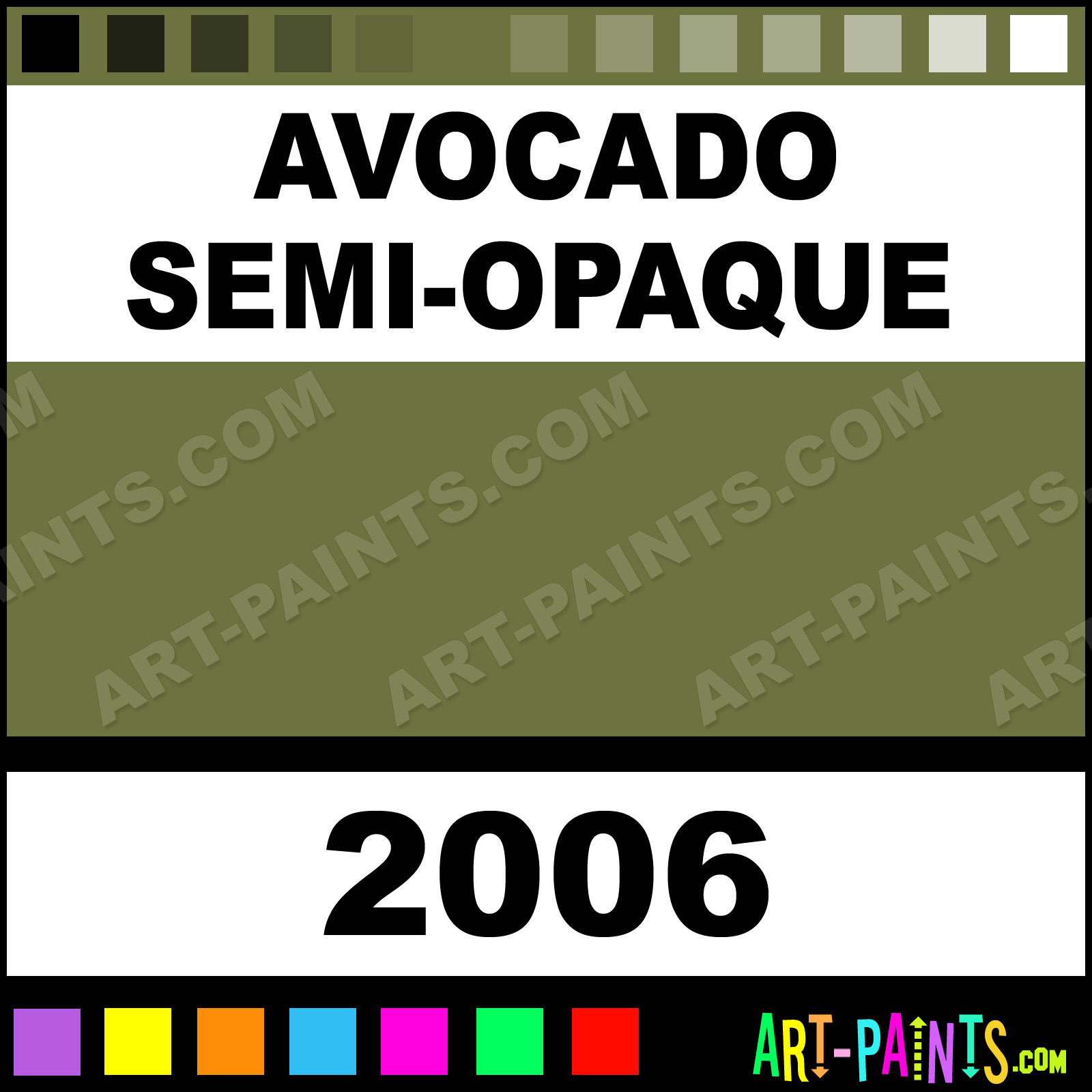 This beautiful Delta Acrylic shade is called Avocado Semi-Opaque, and comes from a company called Ceramcoat. Their product number, along with the HTML color code, RGB, and CMYK codes are listed below. This Beautiful Shade of Avocado Semi-Opaque and others can be found in the Ceramcoat Delta Art Paint Gallery! Also be sure to browse through the other wonderful Professional Color Galleries to see more of Ceramcoat Delta Acrylic Brand Paints and other Paint Manufacturers. And as always, Paint Paint Paint! -Art-Paints.com
