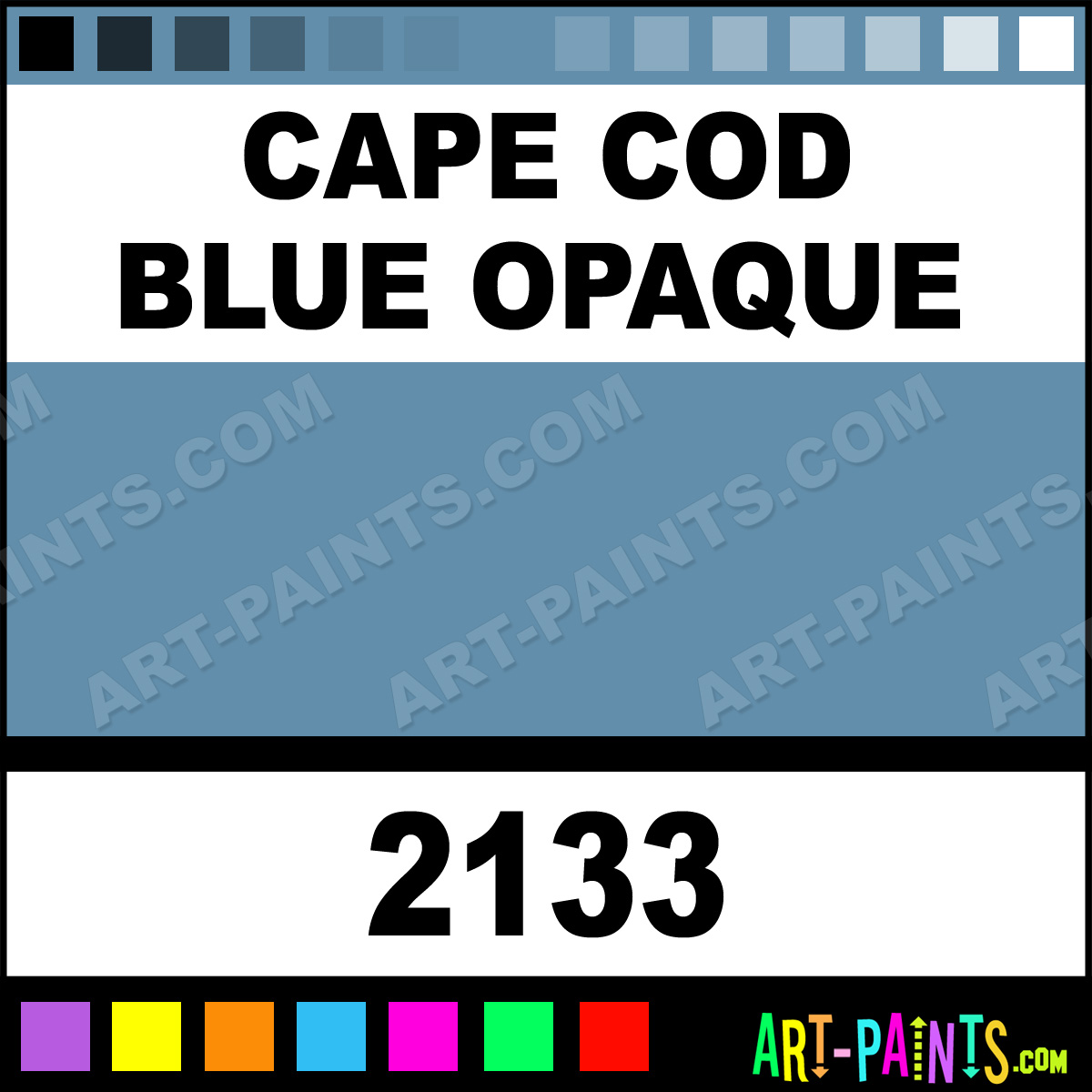 This beautiful Delta Acrylic shade is called Cape Cod Blue Opaque, and comes from a company called Ceramcoat. Their product number, along with the HTML color code, RGB, and CMYK codes are listed below. This Beautiful Shade of Cape Cod Blue Opaque and others can be found in the Ceramcoat Delta Art Paint Gallery! Also be sure to browse through the other wonderful Professional Color Galleries to see more of Ceramcoat Delta Acrylic Brand Paints and other Paint Manufacturers. And as always, Paint Paint Paint! -Art-Paints.com