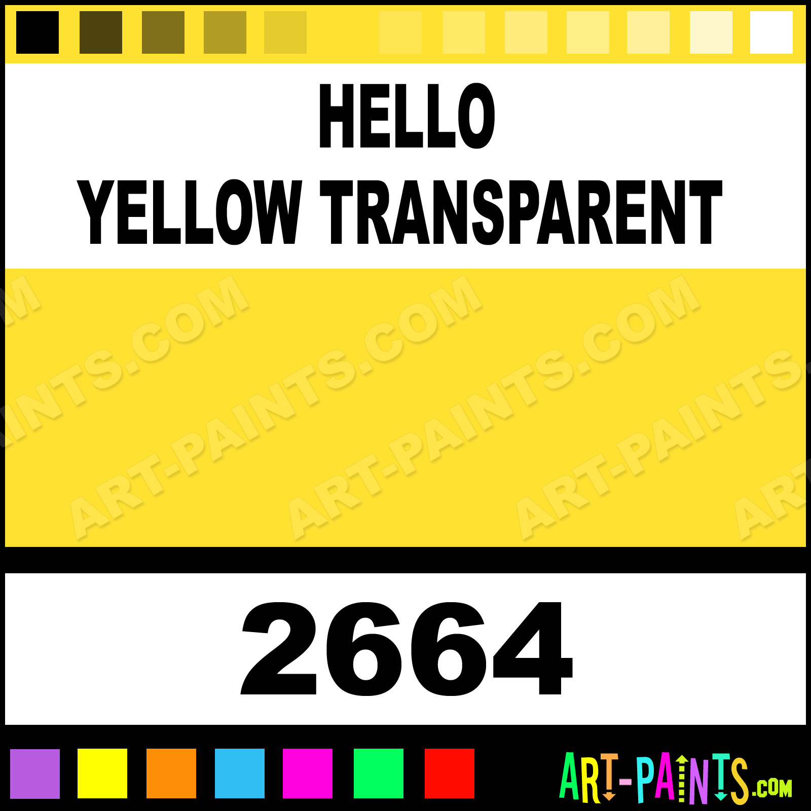 This beautiful Delta Acrylic shade is called Hello Yellow Transparent, and comes from a company called Ceramcoat. Their product number, along with the HTML color code, RGB, and CMYK codes are listed below. This Beautiful Shade of Hello Yellow Transparent and others can be found in the Ceramcoat Delta Art Paint Gallery! Also be sure to browse through the other wonderful Professional Color Galleries to see more of Ceramcoat Delta Acrylic Brand Paints and other Paint Manufacturers. And as always, Paint Paint Paint! -Art-Paints.com