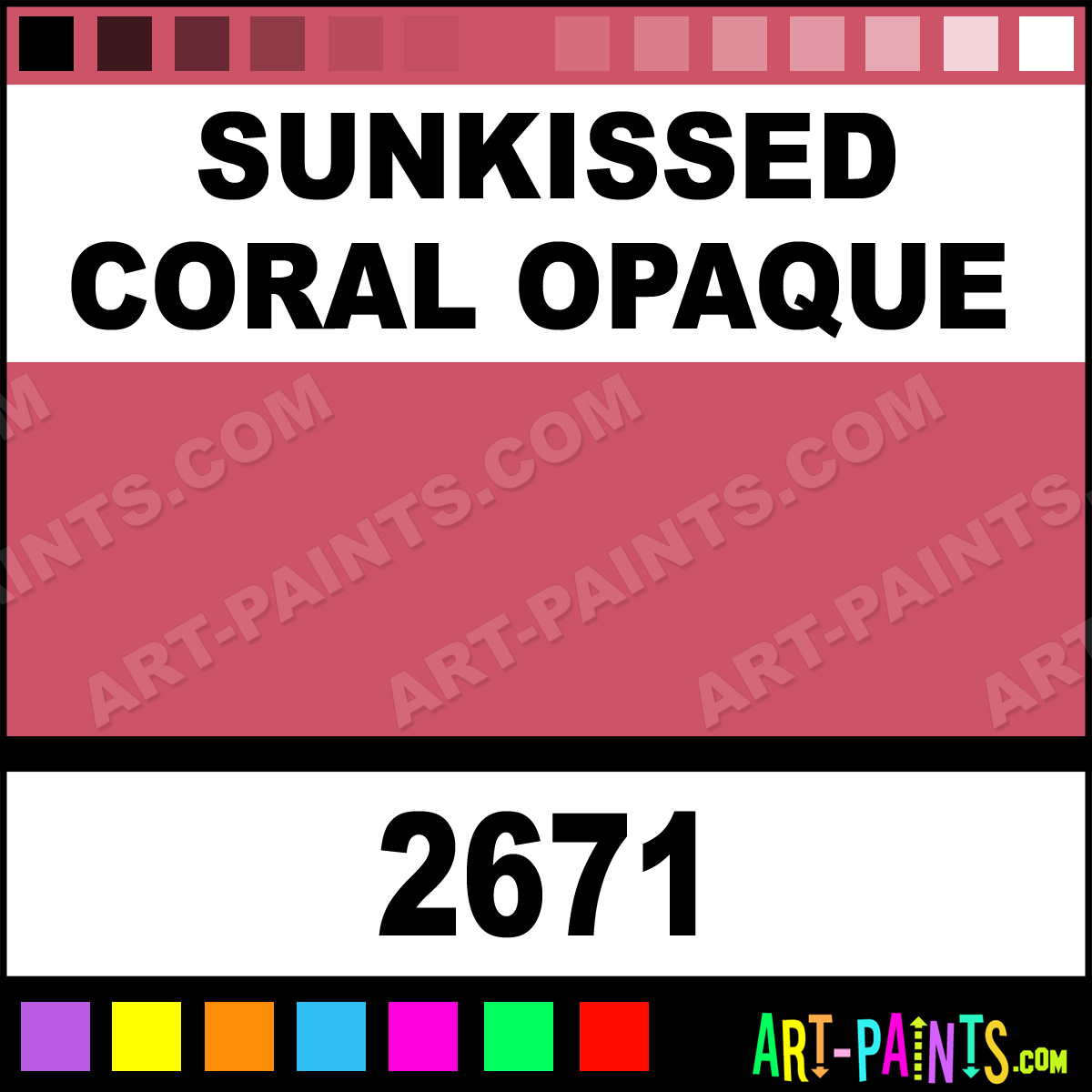 This beautiful Delta Acrylic shade is called Sunkissed Coral Opaque, and comes from a company called Ceramcoat. Their product number, along with the HTML color code, RGB, and CMYK codes are listed below. This Beautiful Shade of Sunkissed Coral Opaque and others can be found in the Ceramcoat Delta Art Paint Gallery! Also be sure to browse through the other wonderful Professional Color Galleries to see more of Ceramcoat Delta Acrylic Brand Paints and other Paint Manufacturers. And as always, Paint Paint Paint! -Art-Paints.com
