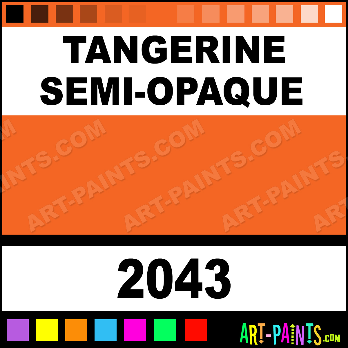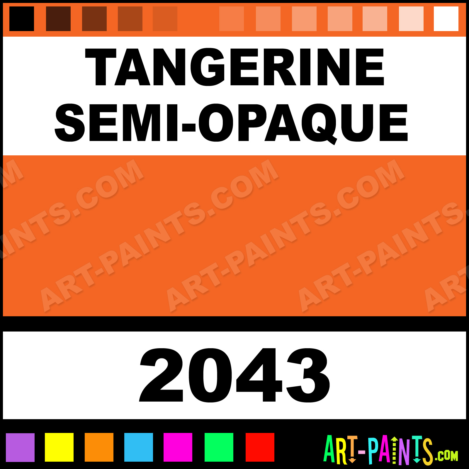 This beautiful Delta Acrylic shade is called Tangerine Semi-Opaque, and comes from a company called Ceramcoat. Their product number, along with the HTML color code, RGB, and CMYK codes are listed below. This Beautiful Shade of Tangerine Semi-Opaque and others can be found in the Ceramcoat Delta Art Paint Gallery! Also be sure to browse through the other wonderful Professional Color Galleries to see more of Ceramcoat Delta Acrylic Brand Paints and other Paint Manufacturers. And as always, Paint Paint Paint! -Art-Paints.com