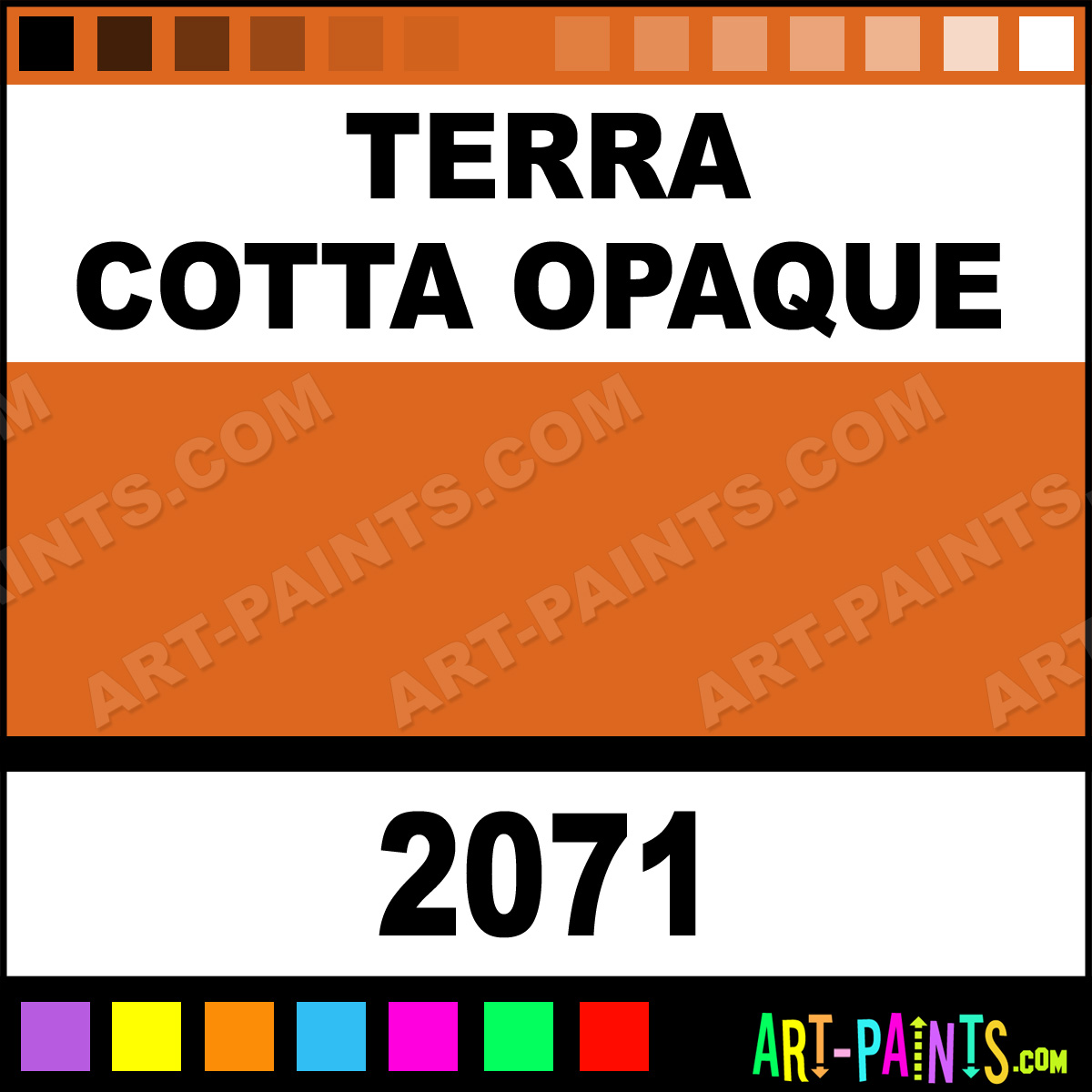 This beautiful Delta Acrylic shade is called Terra Cotta Opaque, and comes from a company called Ceramcoat. Their product number, along with the HTML color code, RGB, and CMYK codes are listed below. This Beautiful Shade of Terra Cotta Opaque and others can be found in the Ceramcoat Delta Art Paint Gallery! Also be sure to browse through the other wonderful Professional Color Galleries to see more of Ceramcoat Delta Acrylic Brand Paints and other Paint Manufacturers. And as always, Paint Paint Paint! -Art-Paints.com