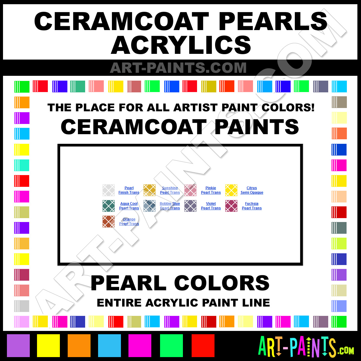 Ceramcoat makes a beautiful Pearls Paint Brand. With a complete line of Acrylic Color Paints, 9 colors in all, available in beautiful hues and colors, they will no doubt keep you painting and smiling at the same time. This brand is very unique and exquisite!