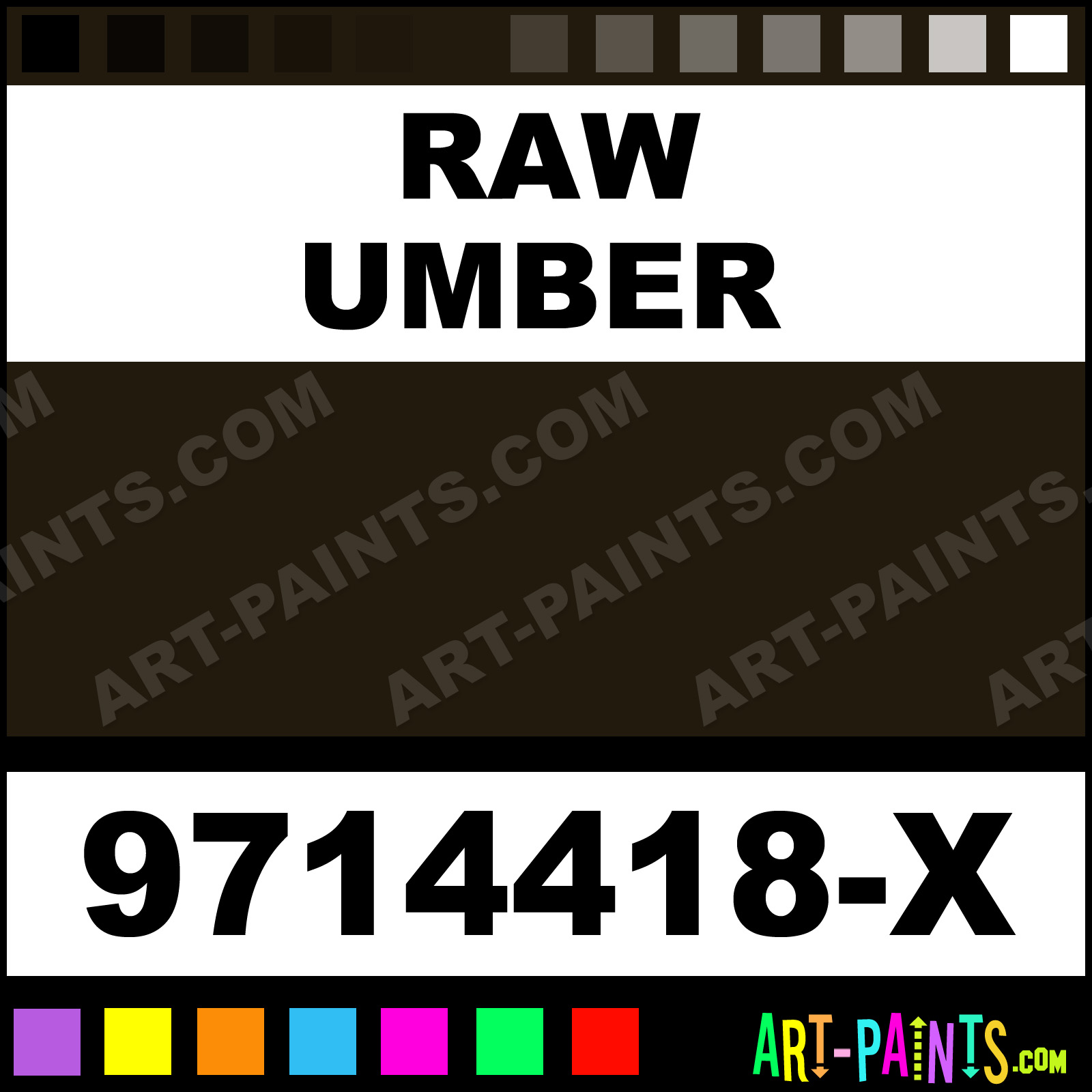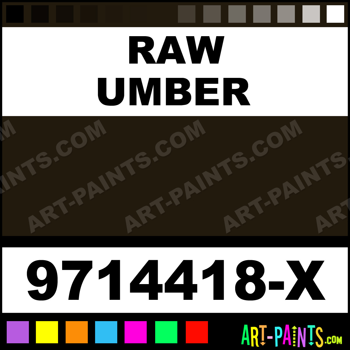 This beautiful Students Acrylic shade is called Raw Umber, and comes from a company called Chromacryl. Their product number, along with the HTML color code, RGB, and CMYK codes are listed below. This Beautiful Shade of Raw Umber and others can be found in the Chromacryl Students Art Paint Gallery! Also be sure to browse through the other wonderful Professional Color Galleries to see more of Chromacryl Students Acrylic Brand Paints and other Paint Manufacturers. And as always, Paint Paint Paint! -Art-Paints.com