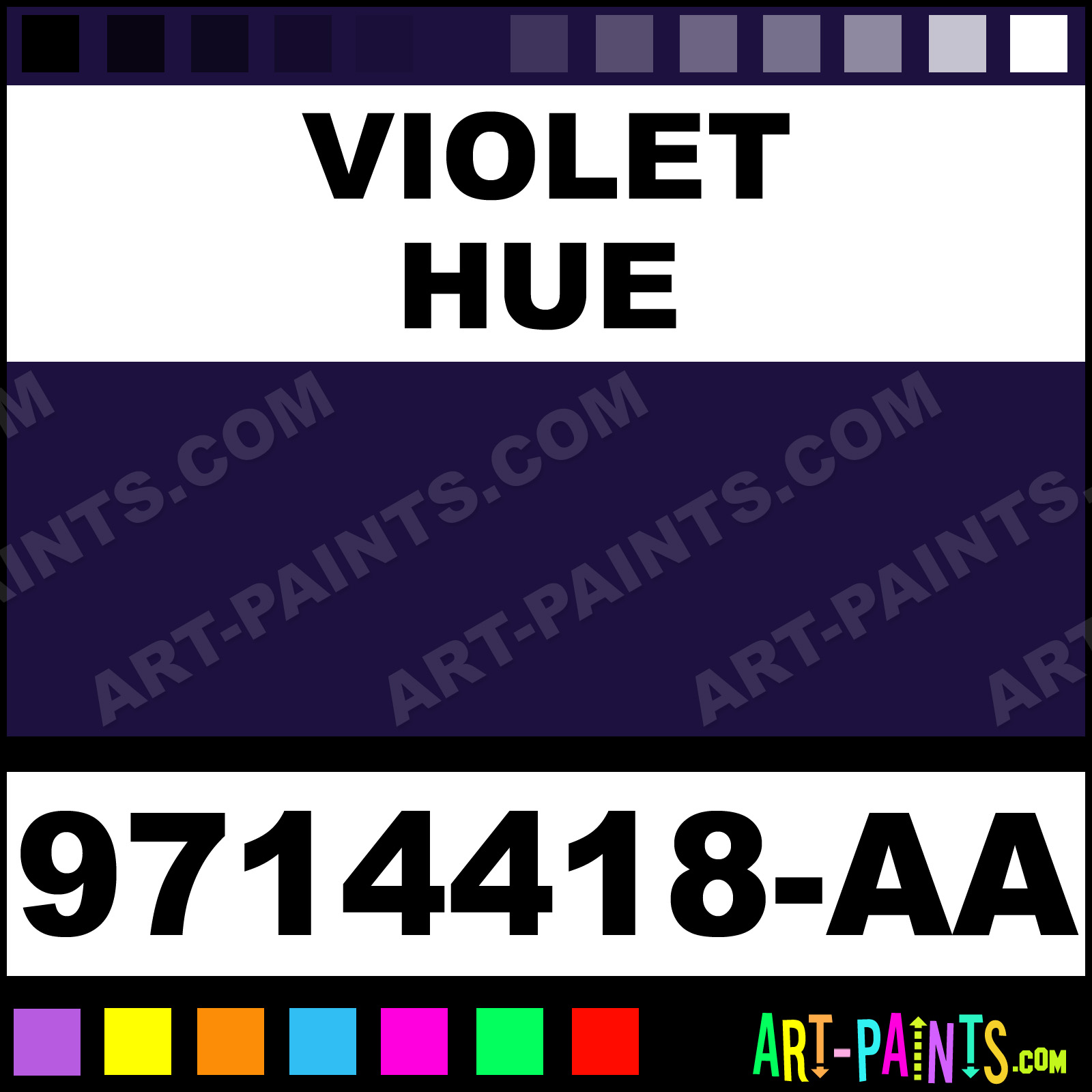 This beautiful Students Acrylic shade is called Violet, and comes from a company called Chromacryl. Their product number, along with the HTML color code, RGB, and CMYK codes are listed below. This Beautiful Shade of Violet and others can be found in the Chromacryl Students Art Paint Gallery! Also be sure to browse through the other wonderful Professional Color Galleries to see more of Chromacryl Students Acrylic Brand Paints and other Paint Manufacturers. And as always, Paint Paint Paint! -Art-Paints.com