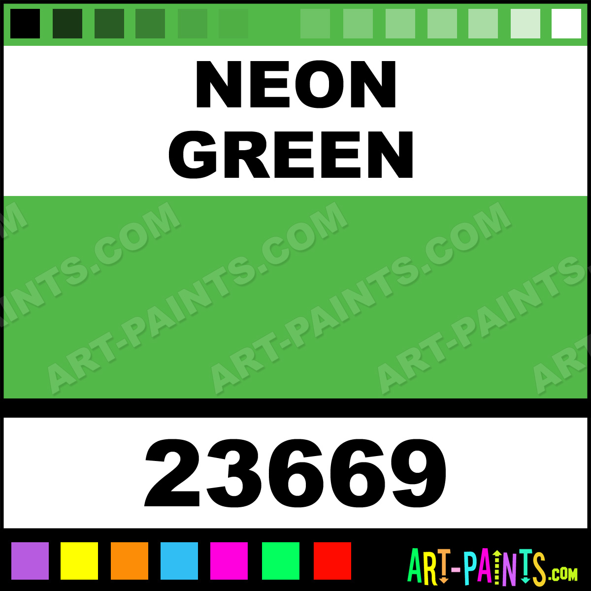 This beautiful Artist Acrylic shade is called Neon Green, and comes from a company called Craft Smart. Their product number, along with the HTML color code, RGB, and CMYK codes are listed below. This Beautiful Shade of Neon Green and others can be found in the Craft Smart Artist Art Paint Gallery! Also be sure to browse through the other wonderful Professional Color Galleries to see more of Craft Smart Artist Acrylic Brand Paints and other Paint Manufacturers. And as always, Paint Paint Paint! -Art-Paints.com
