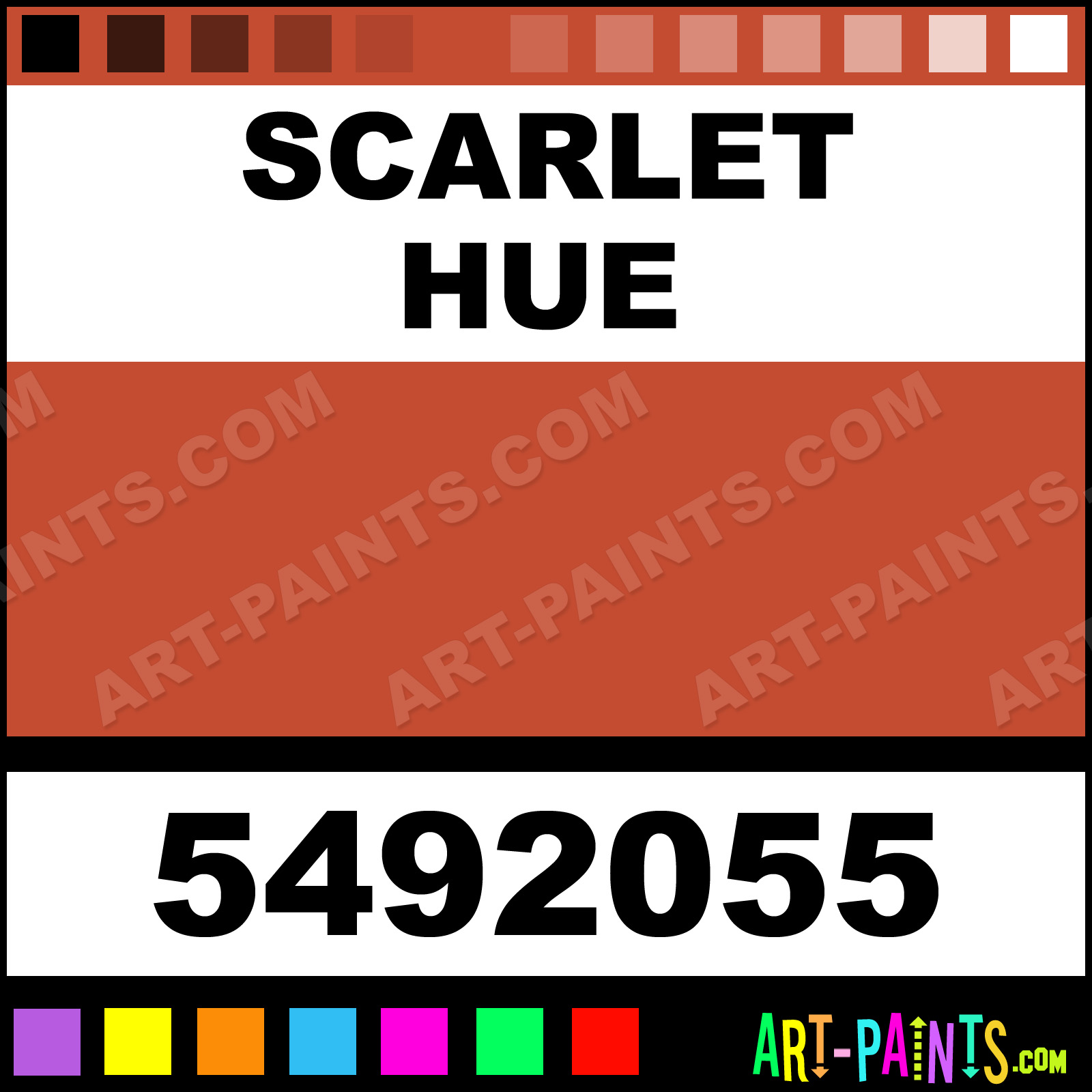This beautiful Colors Acrylic shade is called Scarlet, and comes from a company called Createx. Their product number, along with the HTML color code, RGB, and CMYK codes are listed below. This Beautiful Shade of Scarlet and others can be found in the Createx Colors Art Paint Gallery! Also be sure to browse through the other wonderful Professional Color Galleries to see more of Createx Colors Acrylic Brand Paints and other Paint Manufacturers. And as always, Paint Paint Paint! -Art-Paints.com