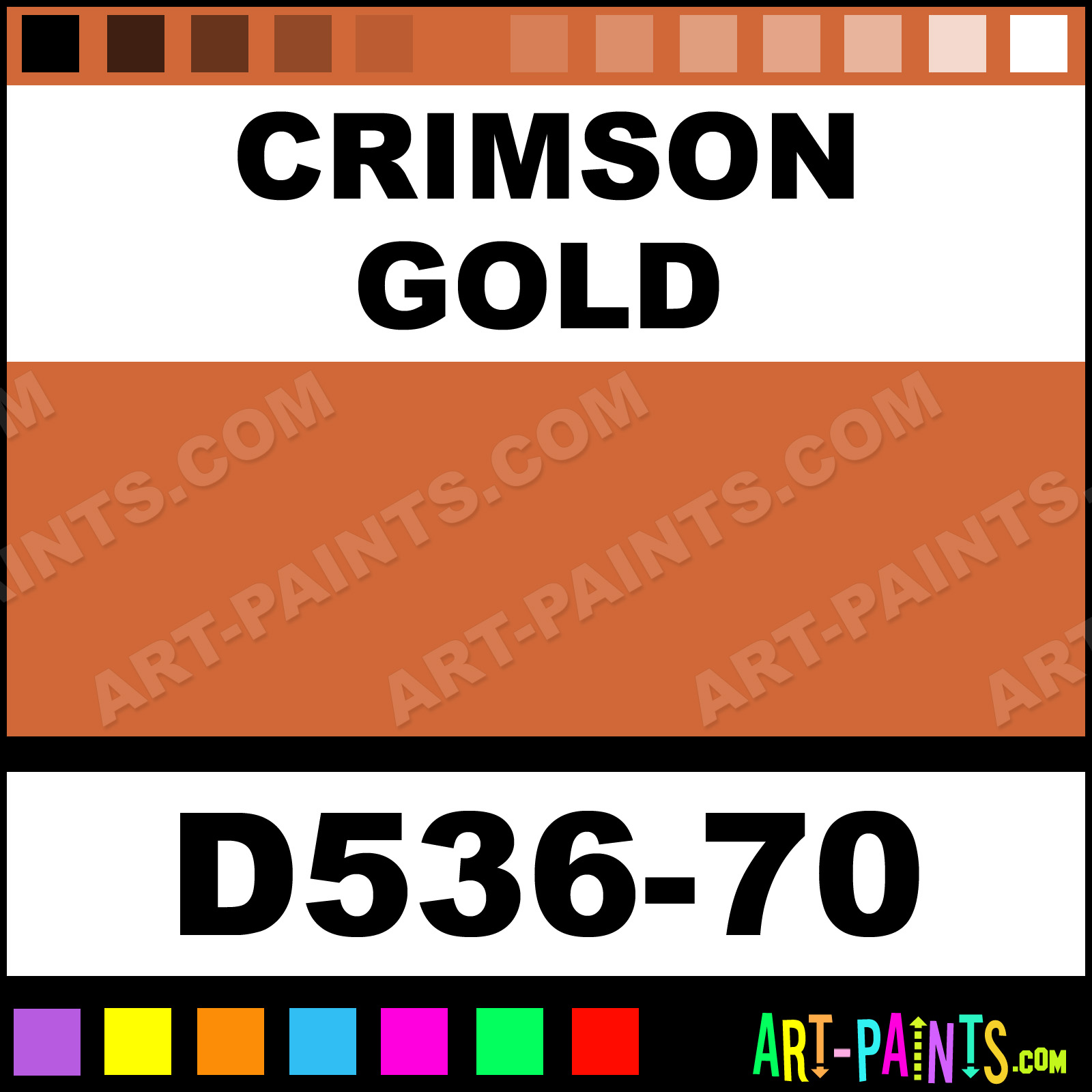 This beautiful Artists Acrylic shade is called Crimson Gold, and comes from a company called Da Vinci. Their product number, along with the HTML color code, RGB, and CMYK codes are listed below. This Beautiful Shade of Crimson Gold and others can be found in the Da Vinci Artists Art Paint Gallery! Also be sure to browse through the other wonderful Professional Color Galleries to see more of Da Vinci Artists Acrylic Brand Paints and other Paint Manufacturers. And as always, Paint Paint Paint! -Art-Paints.com