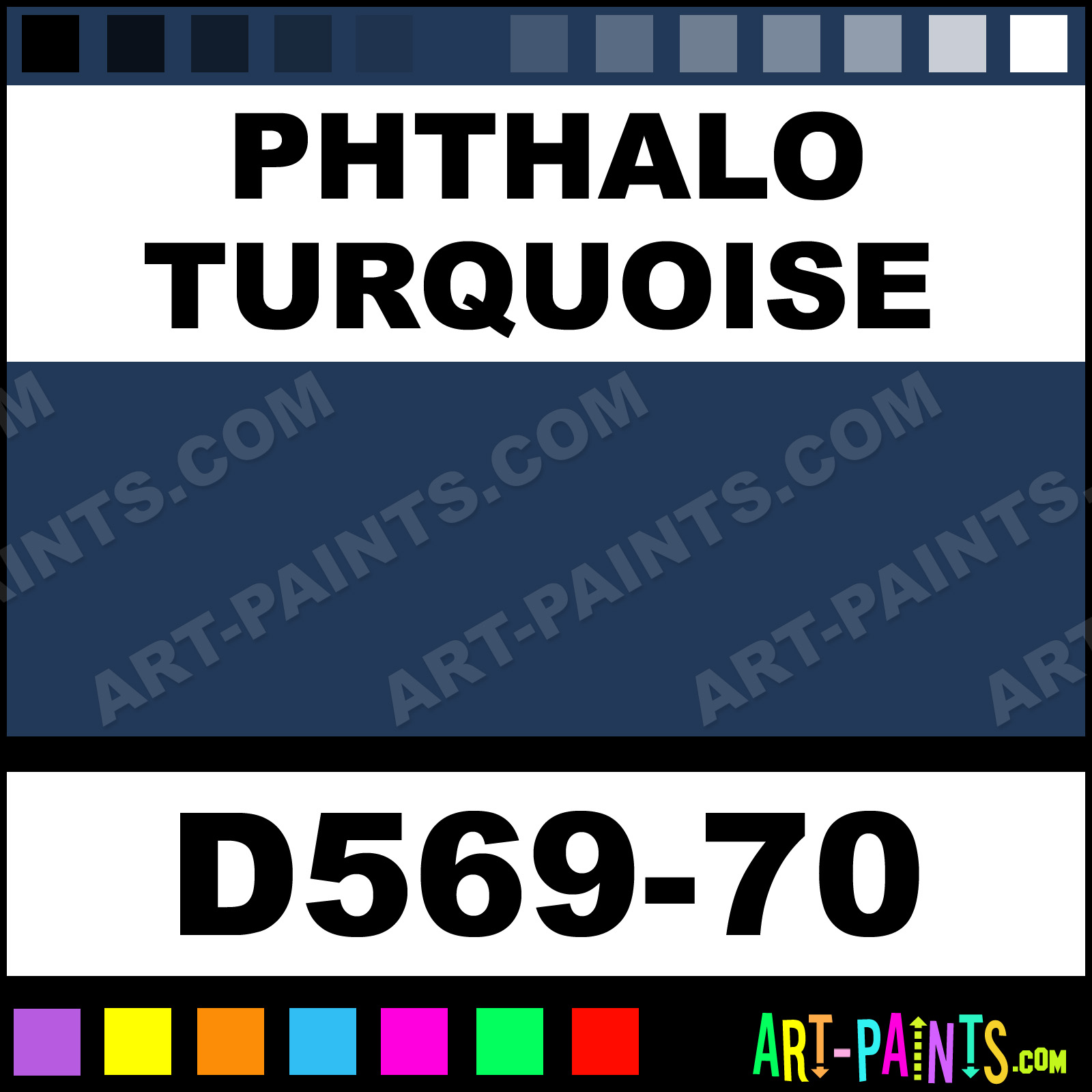 This beautiful Artists Acrylic shade is called Phthalo Turquoise, and comes from a company called Da Vinci. Their product number, along with the HTML color code, RGB, and CMYK codes are listed below. This Beautiful Shade of Phthalo Turquoise and others can be found in the Da Vinci Artists Art Paint Gallery! Also be sure to browse through the other wonderful Professional Color Galleries to see more of Da Vinci Artists Acrylic Brand Paints and other Paint Manufacturers. And as always, Paint Paint Paint! -Art-Paints.com