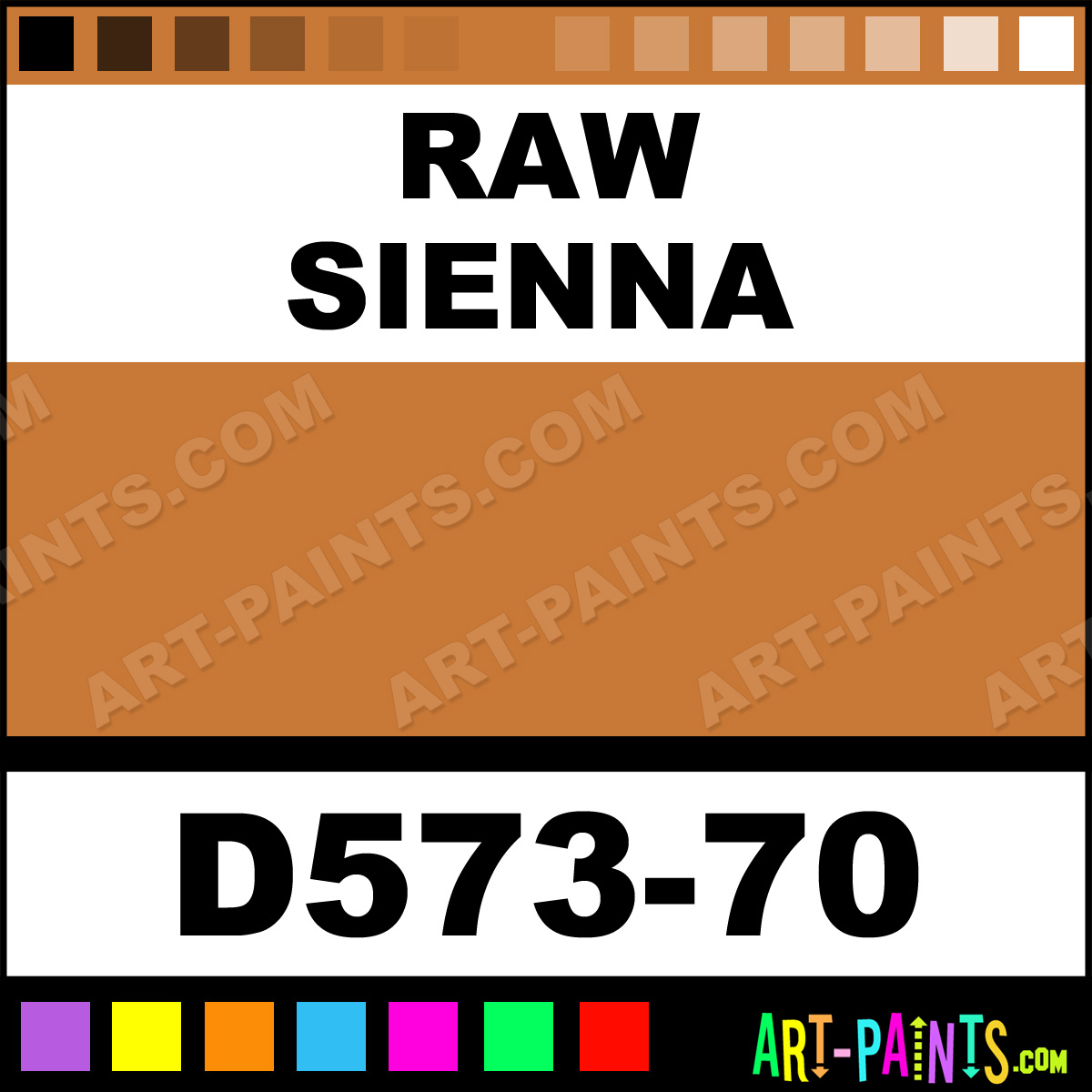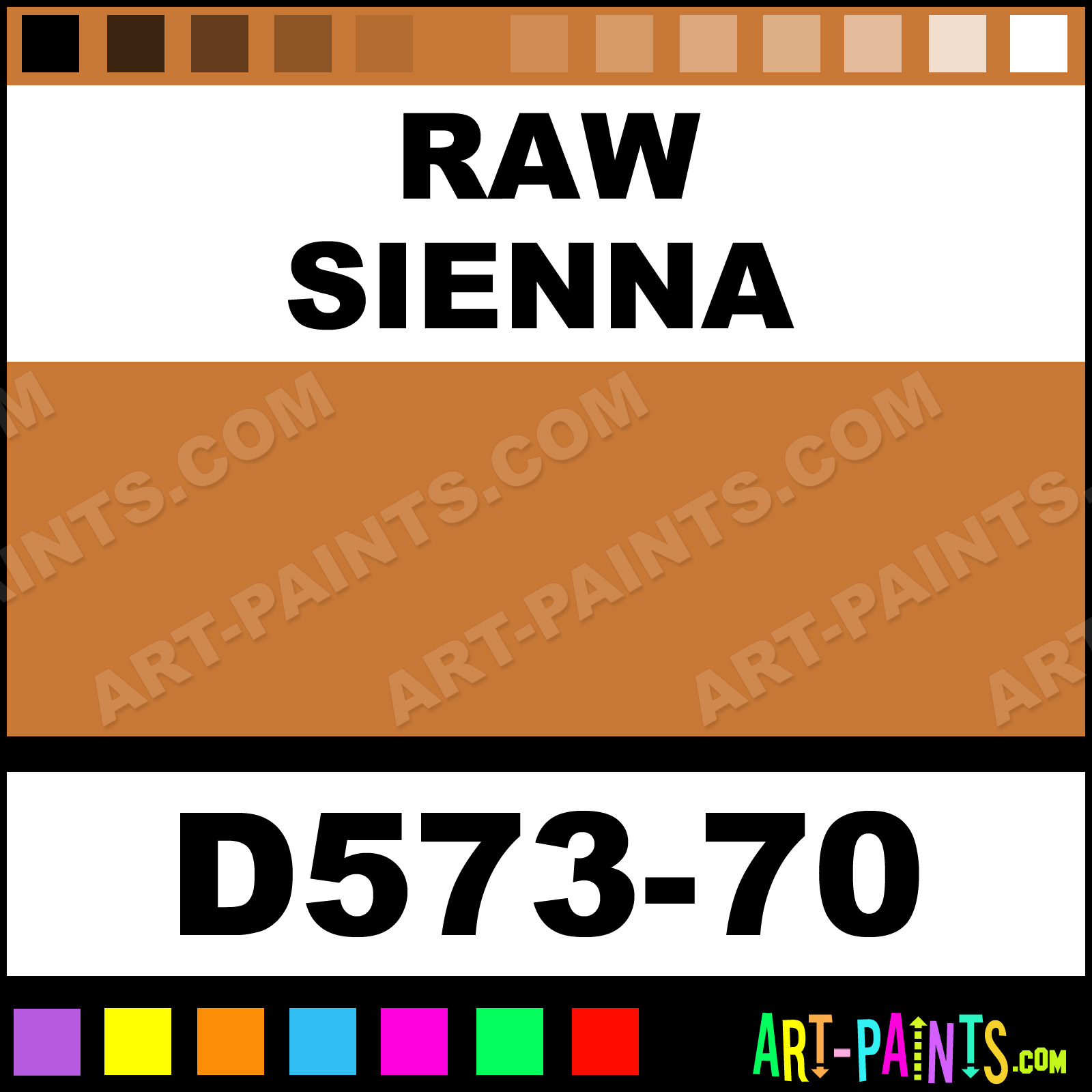 This beautiful Artists Acrylic shade is called Raw Sienna, and comes from a company called Da Vinci. Their product number, along with the HTML color code, RGB, and CMYK codes are listed below. This Beautiful Shade of Raw Sienna and others can be found in the Da Vinci Artists Art Paint Gallery! Also be sure to browse through the other wonderful Professional Color Galleries to see more of Da Vinci Artists Acrylic Brand Paints and other Paint Manufacturers. And as always, Paint Paint Paint! -Art-Paints.com