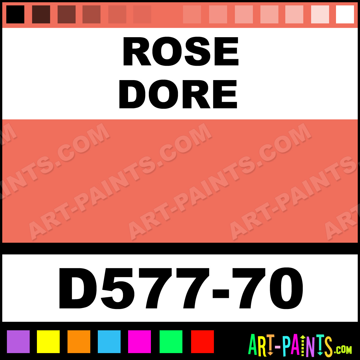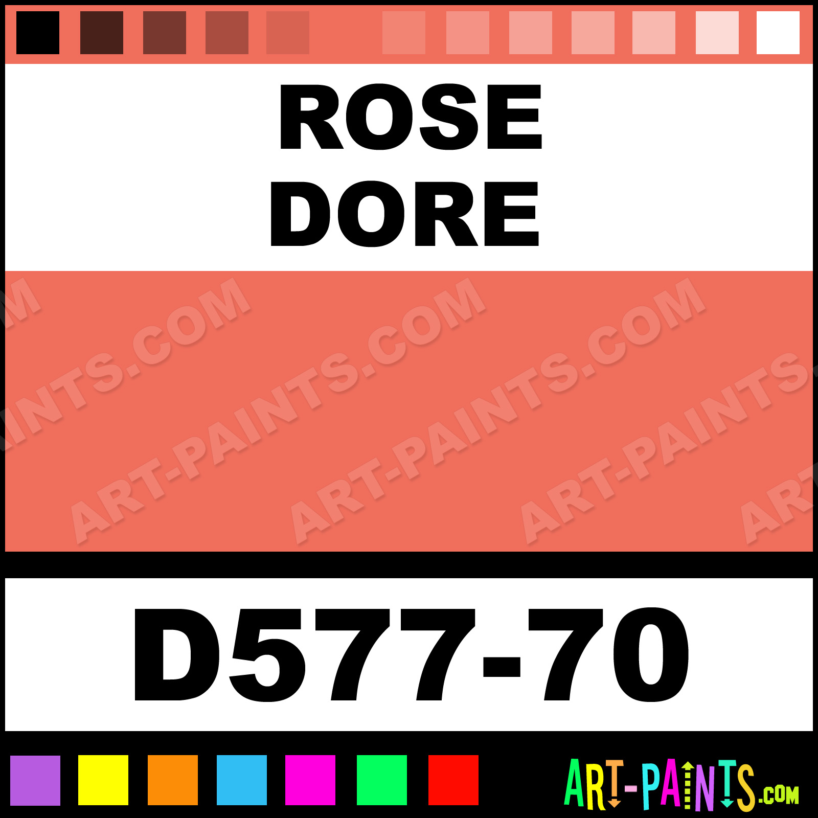 This beautiful Artists Acrylic shade is called Rose Dore, and comes from a company called Da Vinci. Their product number, along with the HTML color code, RGB, and CMYK codes are listed below. This Beautiful Shade of Rose Dore and others can be found in the Da Vinci Artists Art Paint Gallery! Also be sure to browse through the other wonderful Professional Color Galleries to see more of Da Vinci Artists Acrylic Brand Paints and other Paint Manufacturers. And as always, Paint Paint Paint! -Art-Paints.com