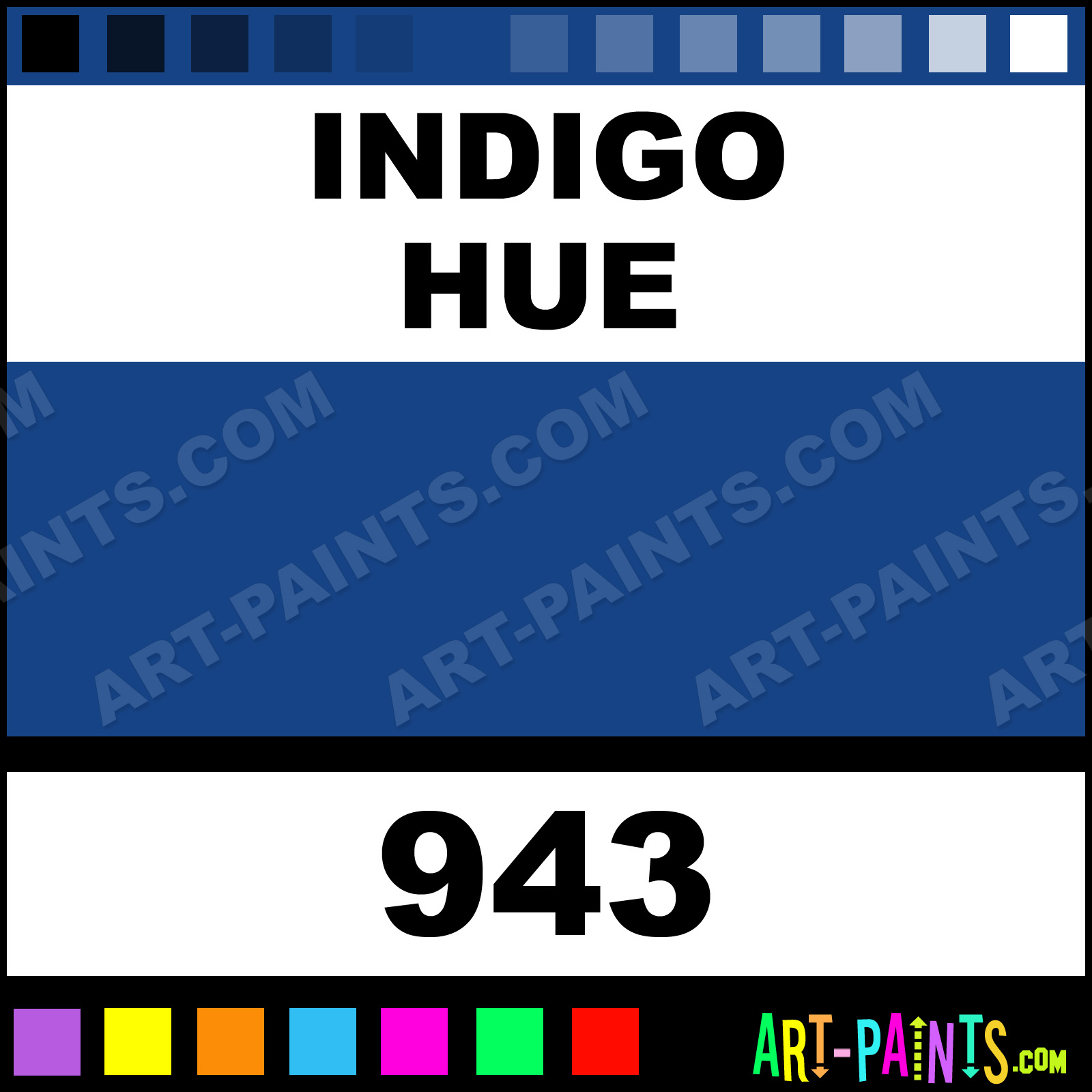 This beautiful Fluid Acrylic shade is called Indigo, and comes from a company called Da Vinci. Their product number, along with the HTML color code, RGB, and CMYK codes are listed below. This Beautiful Shade of Indigo and others can be found in the Da Vinci Fluid Art Paint Gallery! Also be sure to browse through the other wonderful Professional Color Galleries to see more of Da Vinci Fluid Acrylic Brand Paints and other Paint Manufacturers. And as always, Paint Paint Paint! -Art-Paints.com