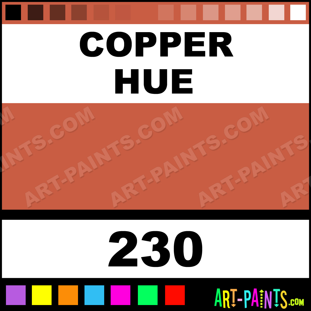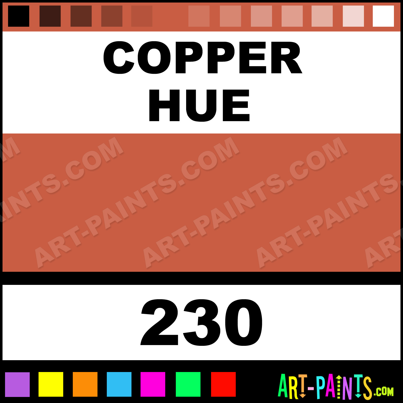This beautiful Cryla Acrylic shade is called Copper, and comes from a company called Daler-Rowney. Their product number, along with the HTML color code, RGB, and CMYK codes are listed below. This Beautiful Shade of Copper and others can be found in the Daler-Rowney Cryla Art Paint Gallery! Also be sure to browse through the other wonderful Professional Color Galleries to see more of Daler-Rowney Cryla Acrylic Brand Paints and other Paint Manufacturers. And as always, Paint Paint Paint! -Art-Paints.com
