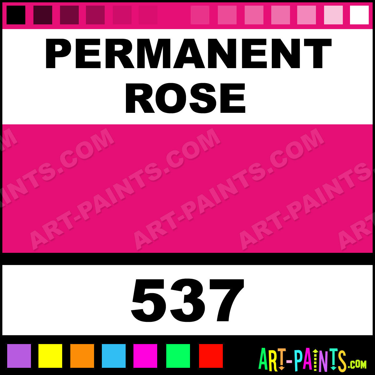 This beautiful Cryla Acrylic shade is called Permanent Rose, and comes from a company called Daler-Rowney. Their product number, along with the HTML color code, RGB, and CMYK codes are listed below. This Beautiful Shade of Permanent Rose and others can be found in the Daler-Rowney Cryla Art Paint Gallery! Also be sure to browse through the other wonderful Professional Color Galleries to see more of Daler-Rowney Cryla Acrylic Brand Paints and other Paint Manufacturers. And as always, Paint Paint Paint! -Art-Paints.com