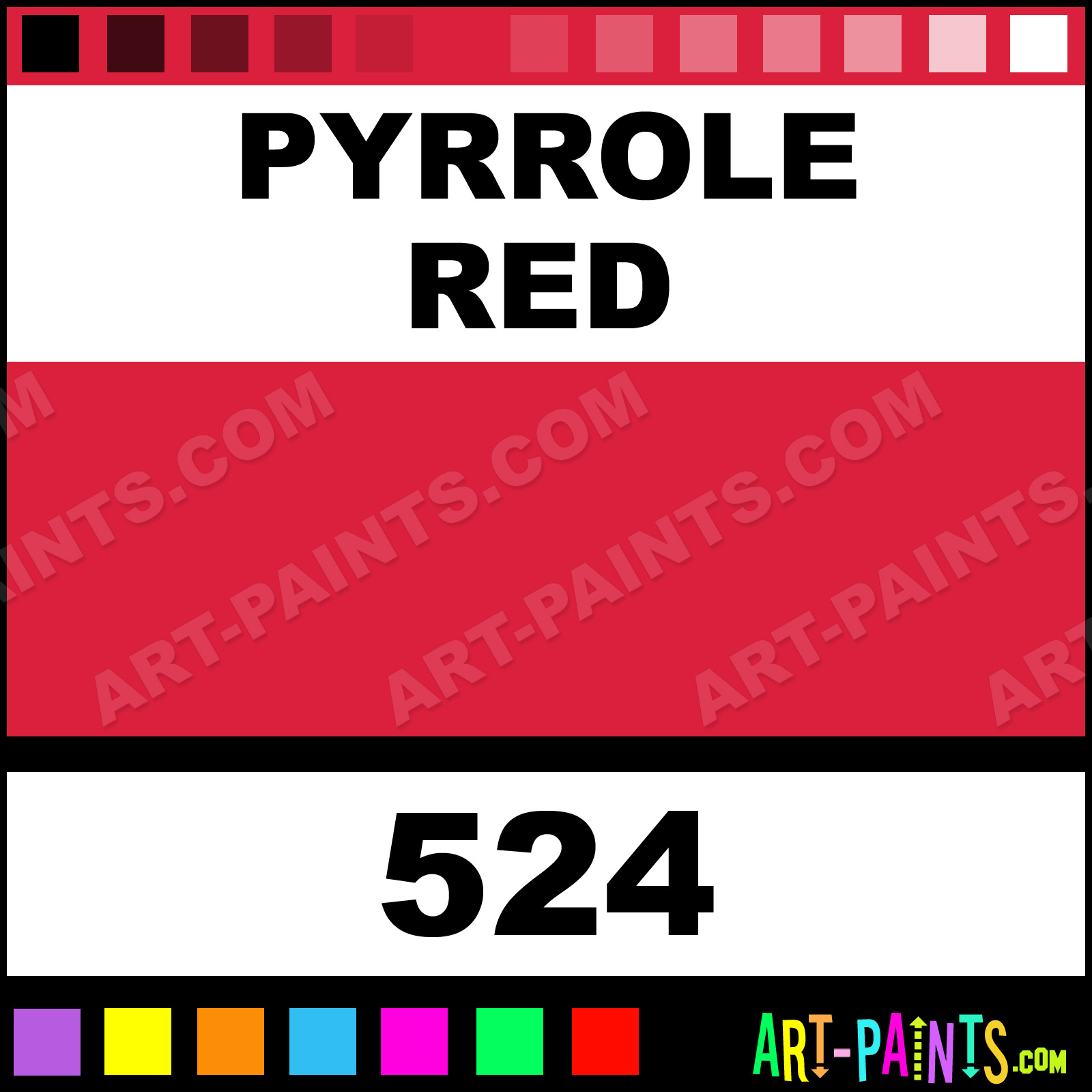 This beautiful Cryla Acrylic shade is called Pyrrole Red, and comes from a company called Daler-Rowney. Their product number, along with the HTML color code, RGB, and CMYK codes are listed below. This Beautiful Shade of Pyrrole Red and others can be found in the Daler-Rowney Cryla Art Paint Gallery! Also be sure to browse through the other wonderful Professional Color Galleries to see more of Daler-Rowney Cryla Acrylic Brand Paints and other Paint Manufacturers. And as always, Paint Paint Paint! -Art-Paints.com