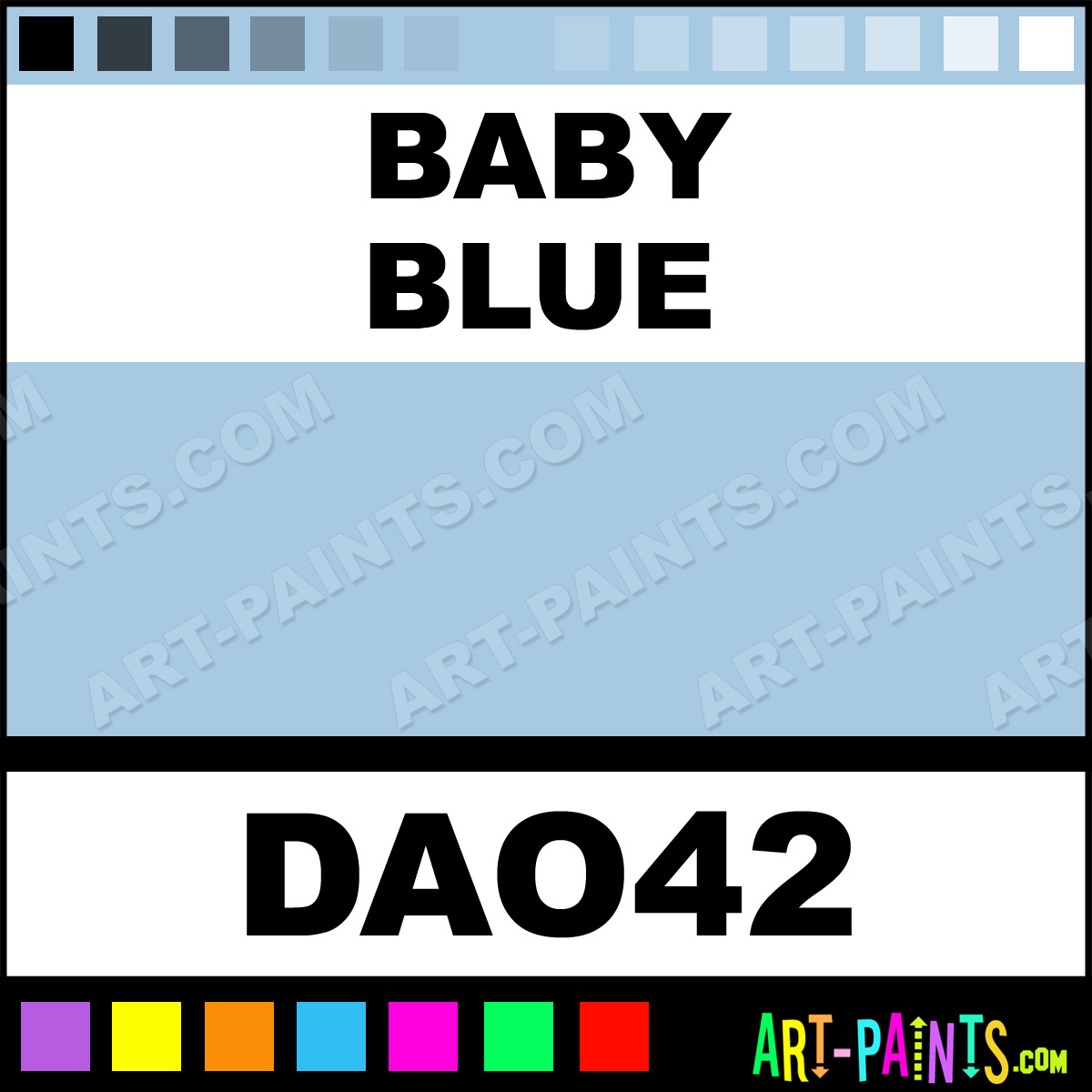 This beautiful Americana Acrylic shade is called Baby Blue, and comes from a company called DecoArt. Their product number, along with the HTML color code, RGB, and CMYK codes are listed below. This Beautiful Acrylic Shade of Baby Blue and others can be found in the DecoArt Americana Paint Gallery! Also be sure to browse through the other Professional Acrylic Galleries to see more of DecoArt Americana Acrylic Paints and other Acrylic Paint Manufacturers!   -Art-Paints.com