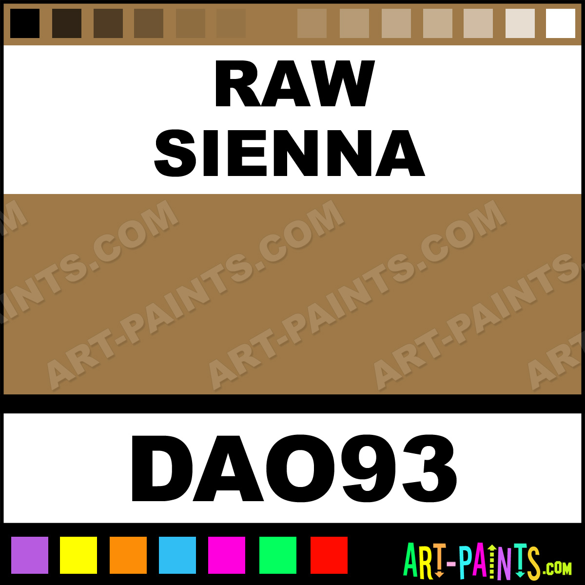 This beautiful Americana Acrylic shade is called Raw Sienna, and comes from a company called DecoArt. Their product number, along with the HTML color code, RGB, and CMYK codes are listed below. This Beautiful Acrylic Shade of Raw Sienna and others can be found in the DecoArt Americana Paint Gallery! Also be sure to browse through the other Professional Acrylic Galleries to see more of DecoArt Americana Acrylic Paints and other Acrylic Paint Manufacturers!   -Art-Paints.com