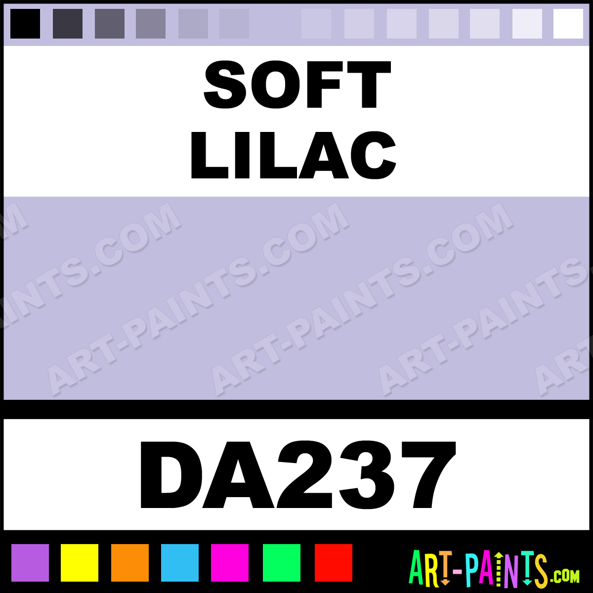This beautiful Americana Acrylic shade is called Soft Lilac, and comes from a company called DecoArt. Their product number, along with the HTML color code, RGB, and CMYK codes are listed below. This Beautiful Acrylic Shade of Soft Lilac and others can be found in the DecoArt Americana Paint Gallery! Also be sure to browse through the other Professional Acrylic Galleries to see more of DecoArt Americana Acrylic Paints and other Acrylic Paint Manufacturers!   -Art-Paints.com