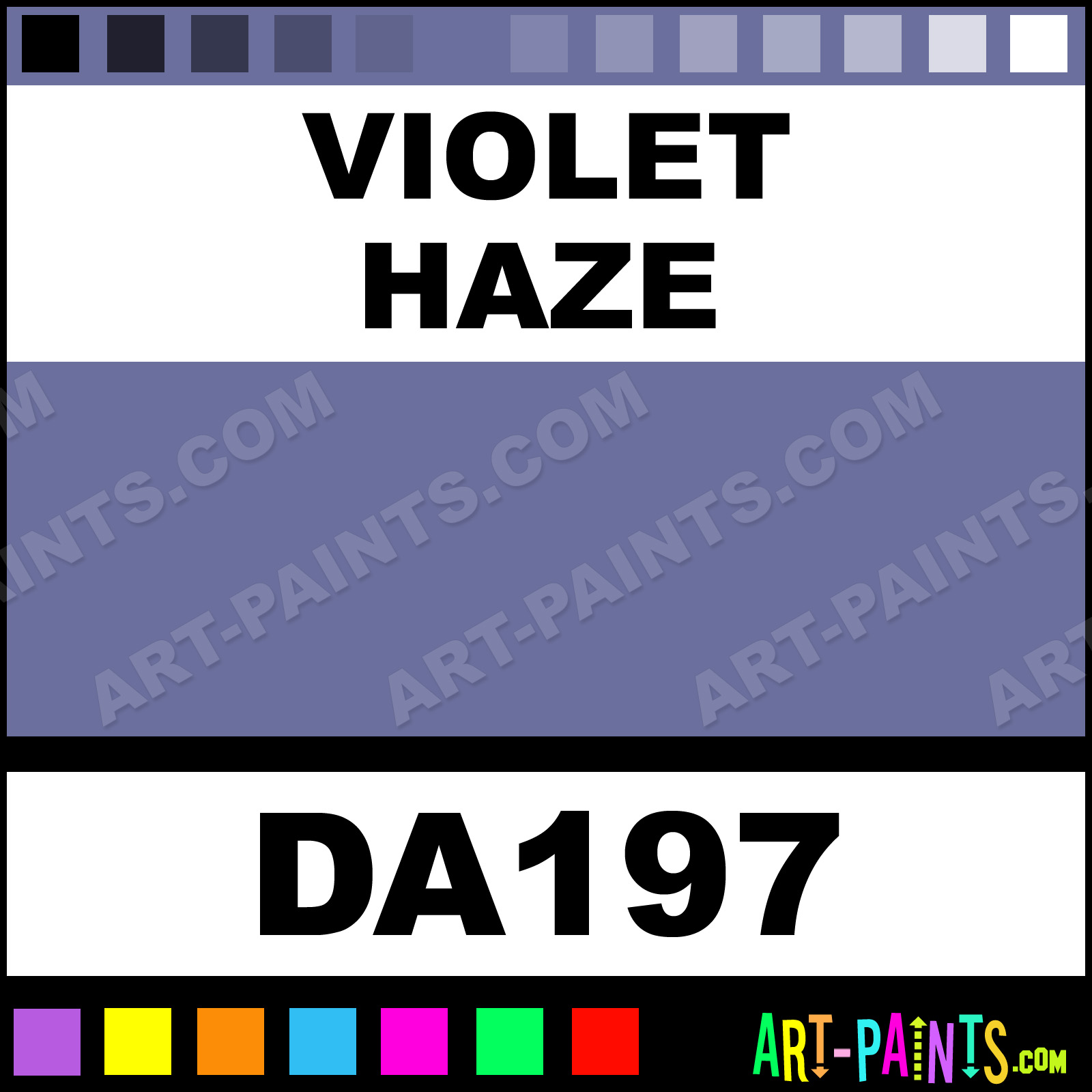 This beautiful Americana Acrylic shade is called Violet Haze, and comes from a company called DecoArt. Their product number, along with the HTML color code, RGB, and CMYK codes are listed below. This Beautiful Acrylic Shade of Violet Haze and others can be found in the DecoArt Americana Paint Gallery! Also be sure to browse through the other Professional Acrylic Galleries to see more of DecoArt Americana Acrylic Paints and other Acrylic Paint Manufacturers!   -Art-Paints.com