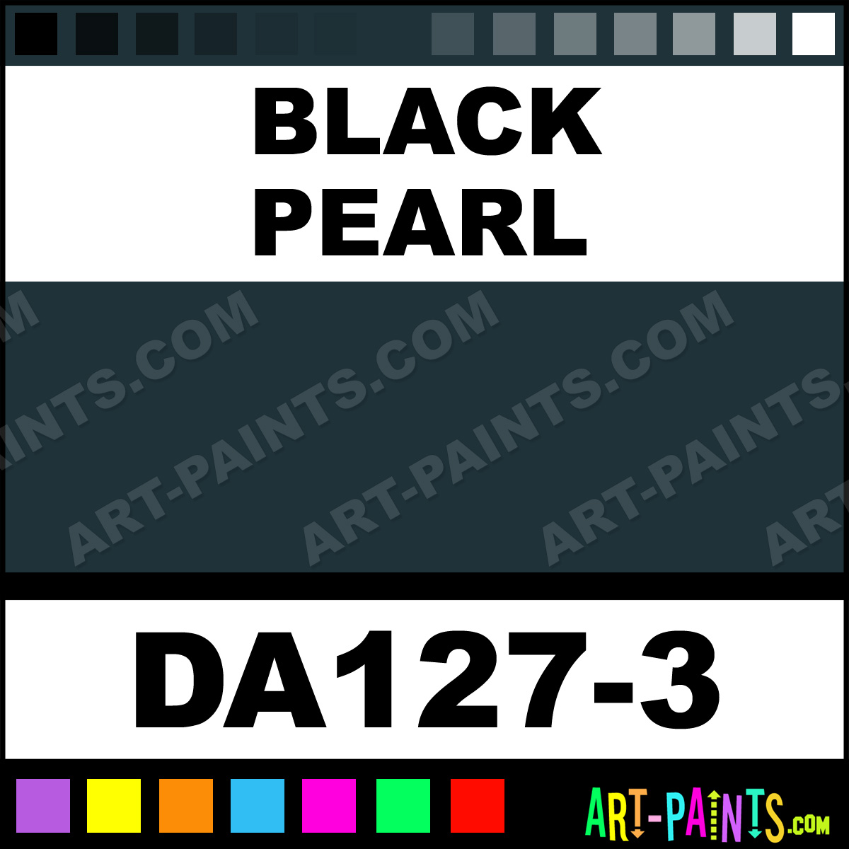 This beautiful Dazzling Metallics Acrylic shade is called Black Pearl, and comes from a company called DecoArt. Their product number, along with the HTML color code, RGB, and CMYK codes are listed below. This Beautiful Shade of Black Pearl and others can be found in the DecoArt Dazzling Metallics Art Paint Gallery! Also be sure to browse through the other wonderful Professional Color Galleries to see more of DecoArt Dazzling Metallics Acrylic Brand Paints and other Paint Manufacturers. And as always, Paint Paint Paint! -Art-Paints.com