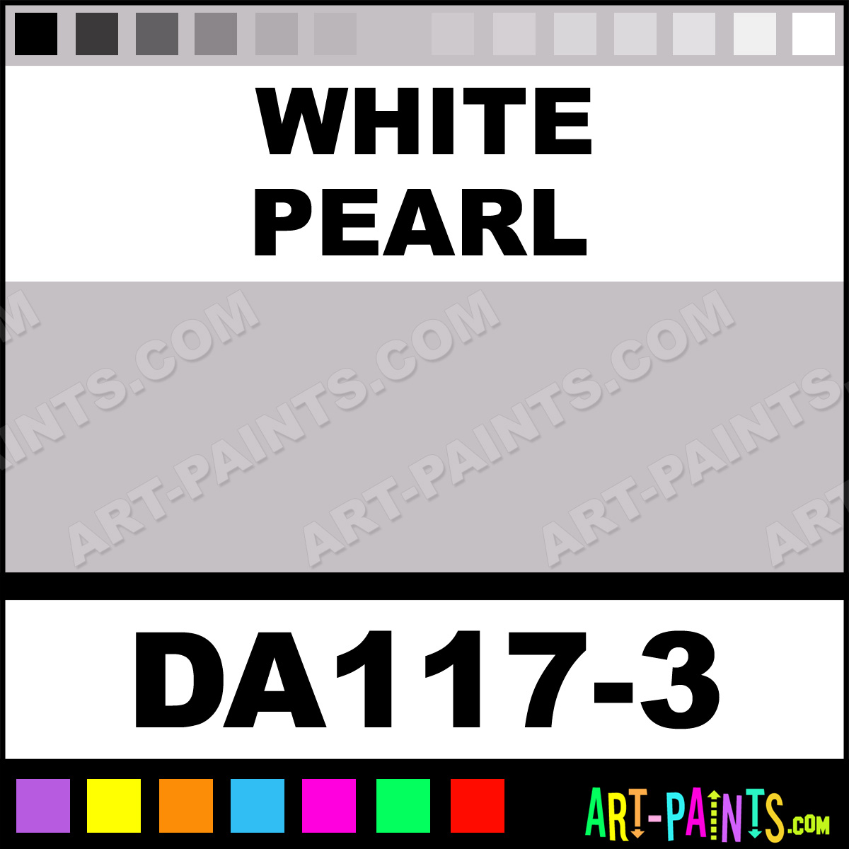 This beautiful Dazzling Metallics Acrylic shade is called White Pearl, and comes from a company called DecoArt. Their product number, along with the HTML color code, RGB, and CMYK codes are listed below. This Beautiful Shade of White Pearl and others can be found in the DecoArt Dazzling Metallics Art Paint Gallery! Also be sure to browse through the other wonderful Professional Color Galleries to see more of DecoArt Dazzling Metallics Acrylic Brand Paints and other Paint Manufacturers. And as always, Paint Paint Paint! -Art-Paints.com