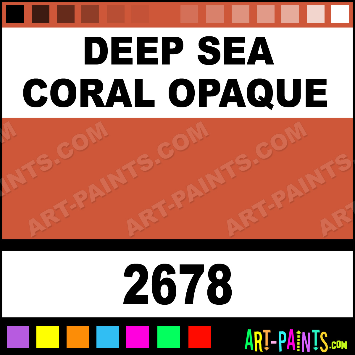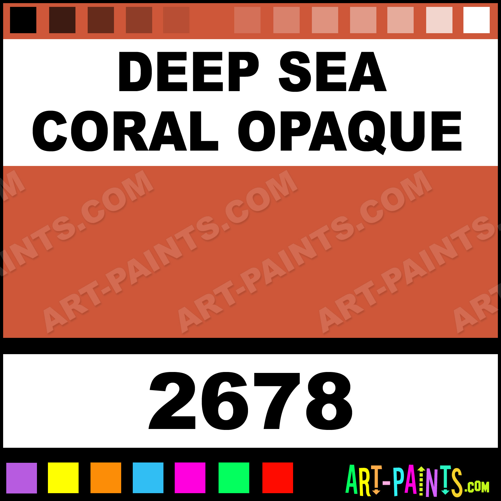 This beautiful Ceramcoat Acrylic shade is called Deep Sea Coral Opaque, and comes from a company called Delta. Their product number, along with the HTML color code, RGB, and CMYK codes are listed below. This Beautiful Shade of Deep Sea Coral Opaque and others can be found in the Delta Ceramcoat Art Paint Gallery! Also be sure to browse through the other wonderful Professional Color Galleries to see more of Delta Ceramcoat Acrylic Brand Paints and other Paint Manufacturers. And as always, Paint Paint Paint! -Art-Paints.com