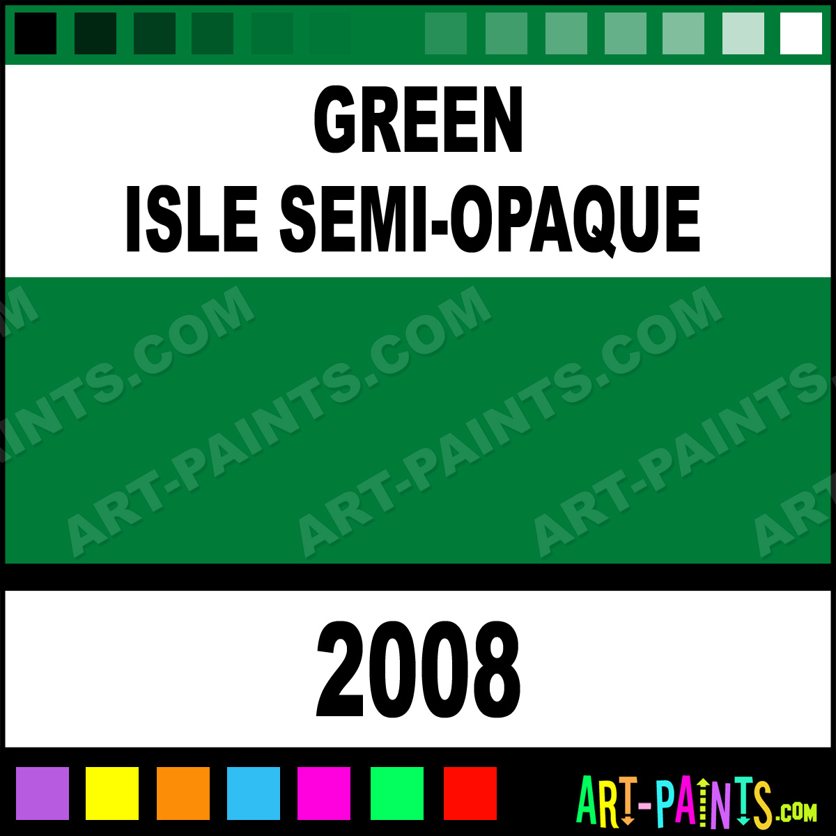 This beautiful Ceramcoat Acrylic shade is called Green Isle Semi-Opaque, and comes from a company called Delta. Their product number, along with the HTML color code, RGB, and CMYK codes are listed below. This Beautiful Shade of Green Isle Semi-Opaque and others can be found in the Delta Ceramcoat Art Paint Gallery! Also be sure to browse through the other wonderful Professional Color Galleries to see more of Delta Ceramcoat Acrylic Brand Paints and other Paint Manufacturers. And as always, Paint Paint Paint! -Art-Paints.com