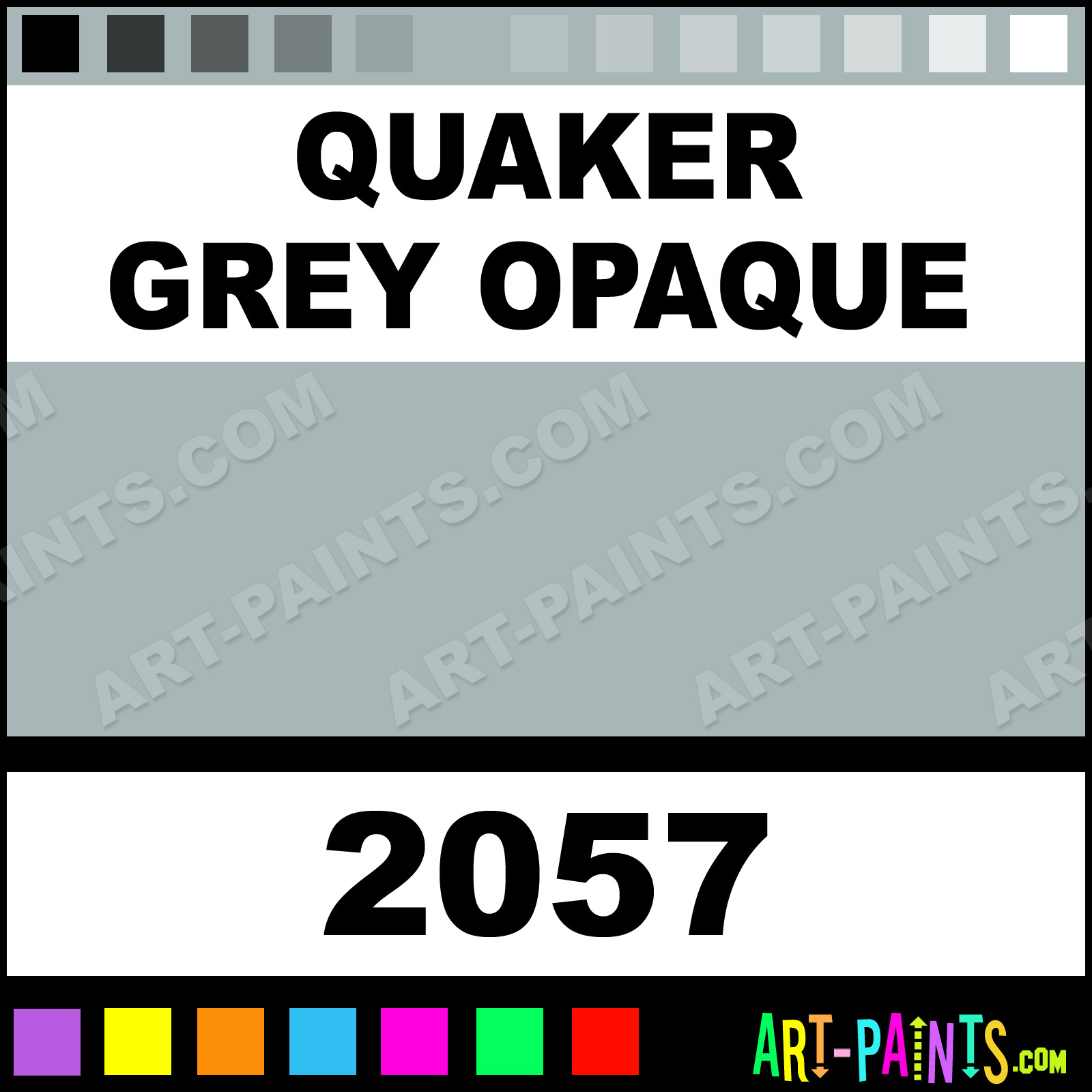 This beautiful Ceramcoat Acrylic shade is called Quaker Grey Opaque, and comes from a company called Delta. Their product number, along with the HTML color code, RGB, and CMYK codes are listed below. This Beautiful Shade of Quaker Grey Opaque and others can be found in the Delta Ceramcoat Art Paint Gallery! Also be sure to browse through the other wonderful Professional Color Galleries to see more of Delta Ceramcoat Acrylic Brand Paints and other Paint Manufacturers. And as always, Paint Paint Paint! -Art-Paints.com