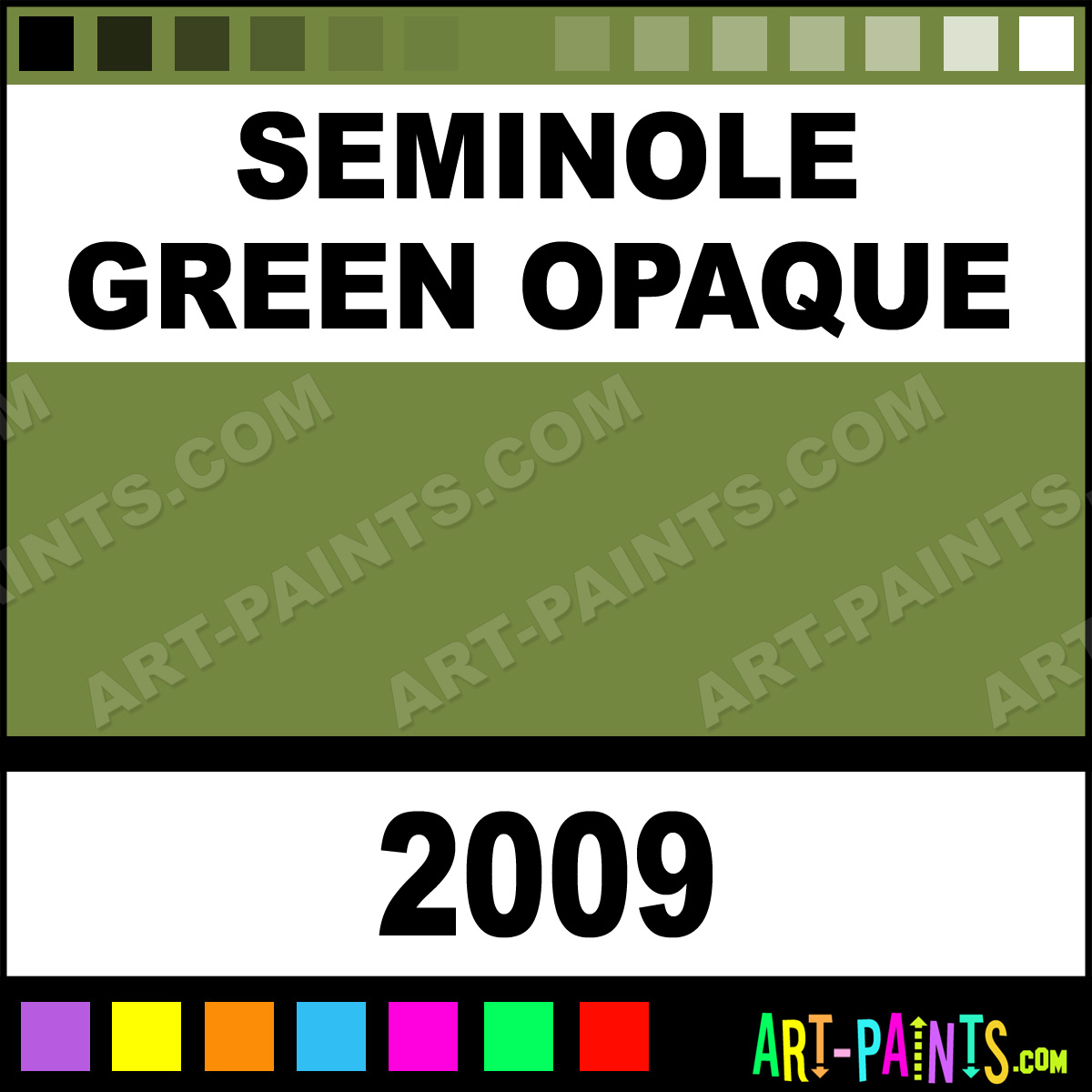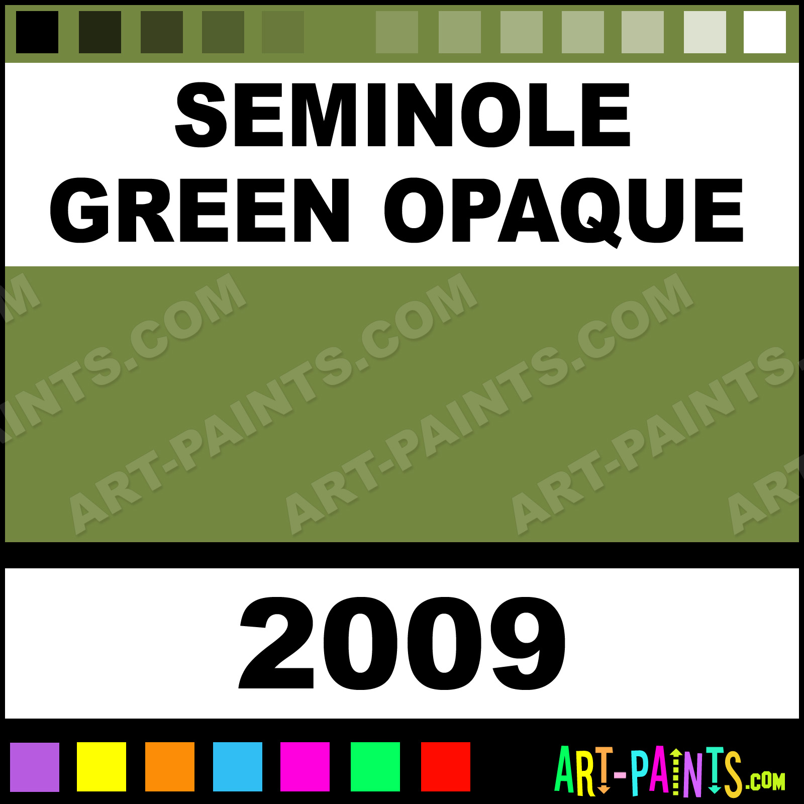 This beautiful Ceramcoat Acrylic shade is called Seminole Green Opaque, and comes from a company called Delta. Their product number, along with the HTML color code, RGB, and CMYK codes are listed below. This Beautiful Shade of Seminole Green Opaque and others can be found in the Delta Ceramcoat Art Paint Gallery! Also be sure to browse through the other wonderful Professional Color Galleries to see more of Delta Ceramcoat Acrylic Brand Paints and other Paint Manufacturers. And as always, Paint Paint Paint! -Art-Paints.com