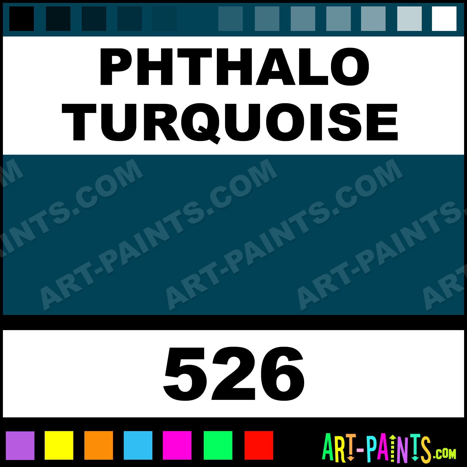 This beautiful Artists Acrylic shade is called Phthalo Turquoise, and comes from a company called Finity. Their product number, along with the HTML color code, RGB, and CMYK codes are listed below. This Beautiful Shade of Phthalo Turquoise and others can be found in the Finity Artists Art Paint Gallery! Also be sure to browse through the other wonderful Professional Color Galleries to see more of Finity Artists Acrylic Brand Paints and other Paint Manufacturers. And as always, Paint Paint Paint! -Art-Paints.com