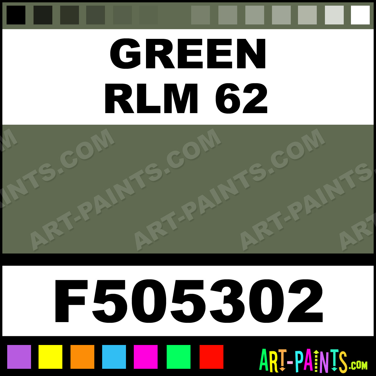 This beautiful Military Model Acrylic shade is called Green RLM 62, and comes from a company called Floquil. Their product number, along with the HTML color code, RGB, and CMYK codes are listed below. This Beautiful Shade of Green RLM 62 and others can be found in the Floquil Military Model Art Paint Gallery! Also be sure to browse through the other wonderful Professional Color Galleries to see more of Floquil Military Model Acrylic Brand Paints and other Paint Manufacturers. And as always, Paint Paint Paint! -Art-Paints.com