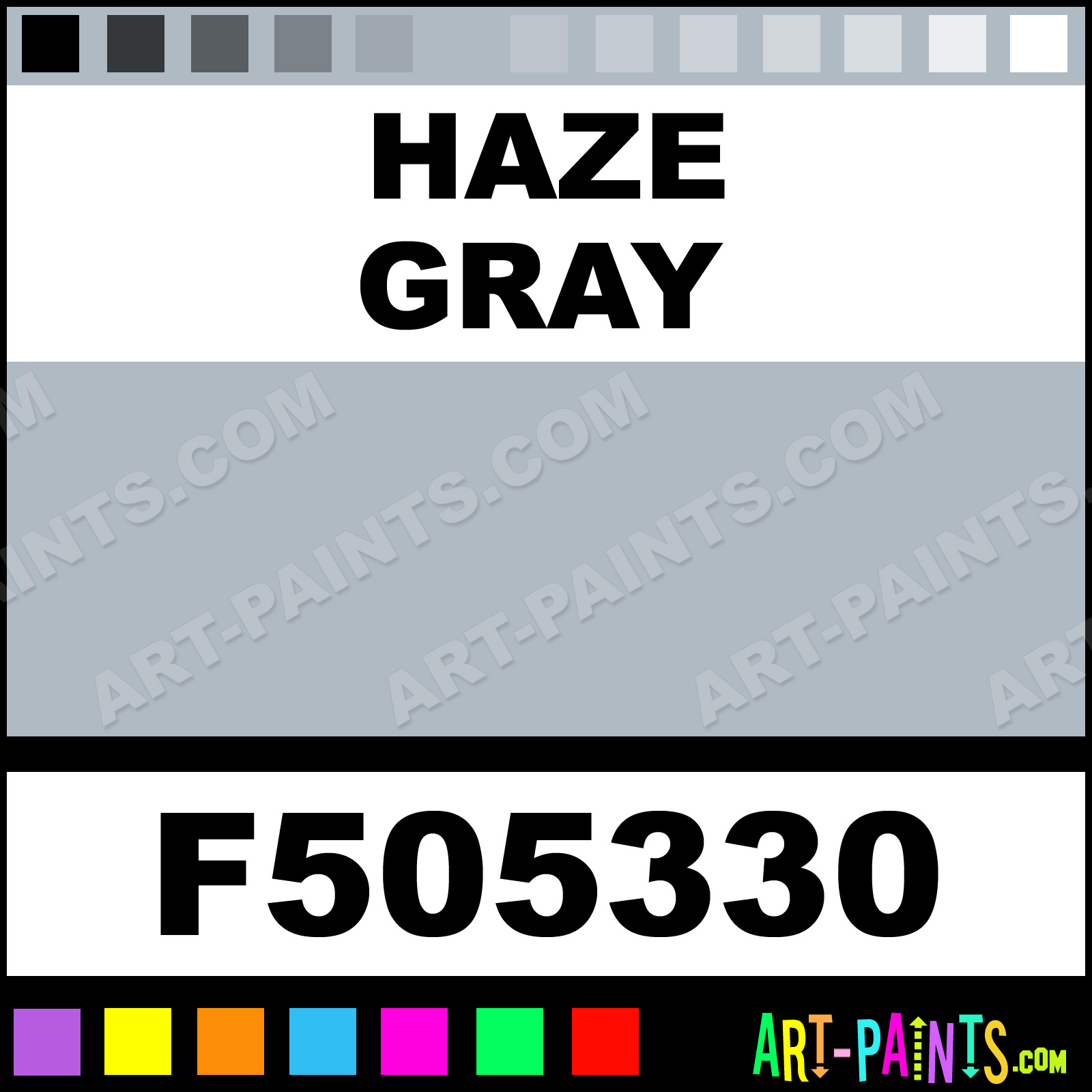 This beautiful Military Model Acrylic shade is called Haze Gray, and comes from a company called Floquil. Their product number, along with the HTML color code, RGB, and CMYK codes are listed below. This Beautiful Shade of Haze Gray and others can be found in the Floquil Military Model Art Paint Gallery! Also be sure to browse through the other wonderful Professional Color Galleries to see more of Floquil Military Model Acrylic Brand Paints and other Paint Manufacturers. And as always, Paint Paint Paint! -Art-Paints.com