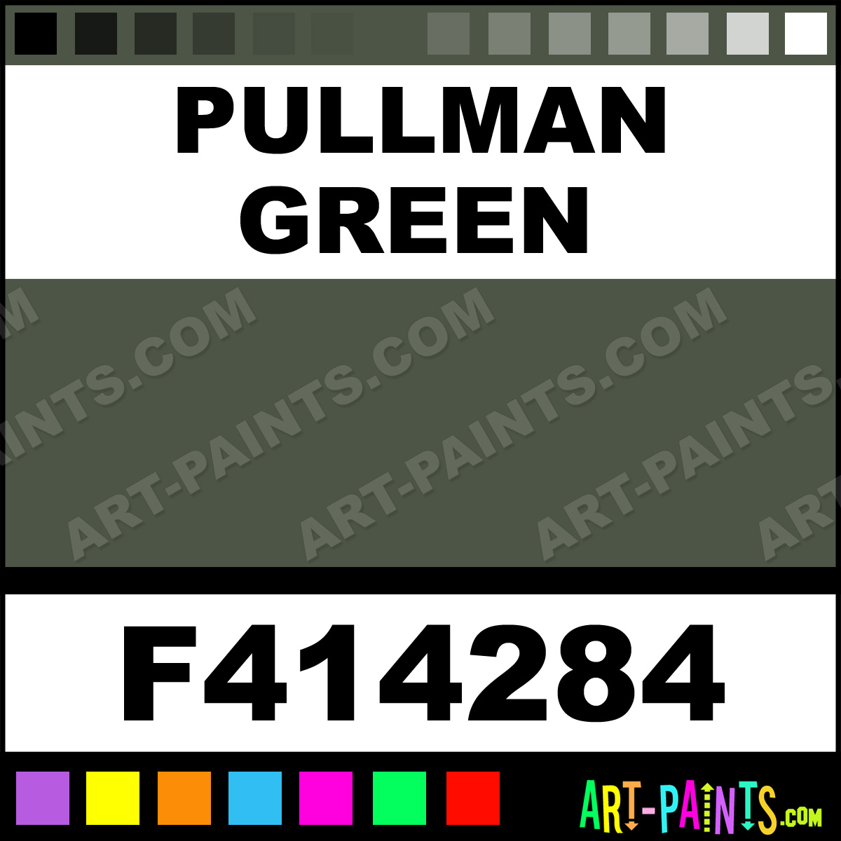 This beautiful Railroad Acrylic shade is called Pullman Green, and comes from a company called Floquil. Their product number, along with the HTML color code, RGB, and CMYK codes are listed below. This Beautiful Shade of Pullman Green and others can be found in the Floquil Railroad Art Paint Gallery! Also be sure to browse through the other wonderful Professional Color Galleries to see more of Floquil Railroad Acrylic Brand Paints and other Paint Manufacturers. And as always, Paint Paint Paint! -Art-Paints.com