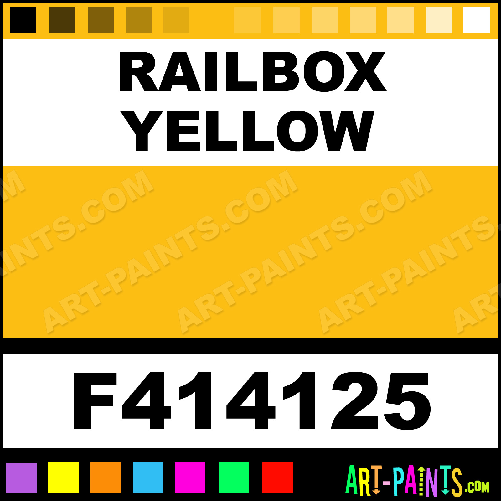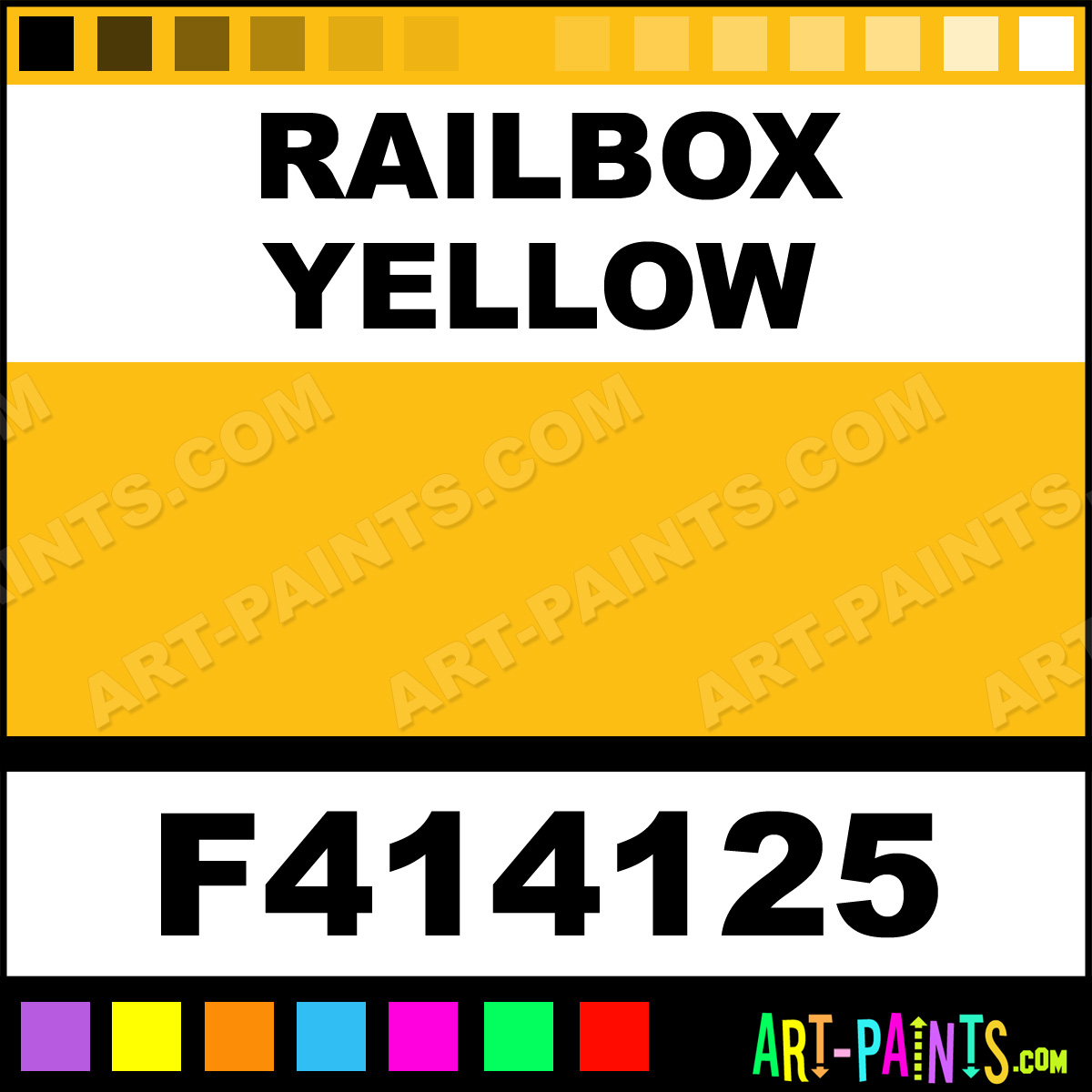 This beautiful Railroad Acrylic shade is called Railbox Yellow, and comes from a company called Floquil. Their product number, along with the HTML color code, RGB, and CMYK codes are listed below. This Beautiful Shade of Railbox Yellow and others can be found in the Floquil Railroad Art Paint Gallery! Also be sure to browse through the other wonderful Professional Color Galleries to see more of Floquil Railroad Acrylic Brand Paints and other Paint Manufacturers. And as always, Paint Paint Paint! -Art-Paints.com