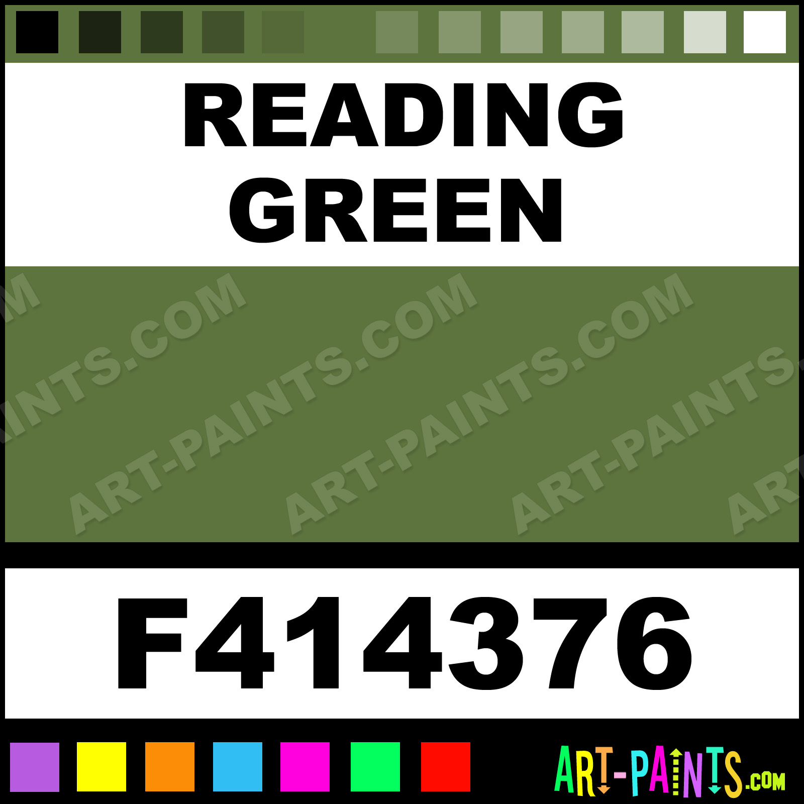This beautiful Railroad Acrylic shade is called Reading Green, and comes from a company called Floquil. Their product number, along with the HTML color code, RGB, and CMYK codes are listed below. This Beautiful Shade of Reading Green and others can be found in the Floquil Railroad Art Paint Gallery! Also be sure to browse through the other wonderful Professional Color Galleries to see more of Floquil Railroad Acrylic Brand Paints and other Paint Manufacturers. And as always, Paint Paint Paint! -Art-Paints.com