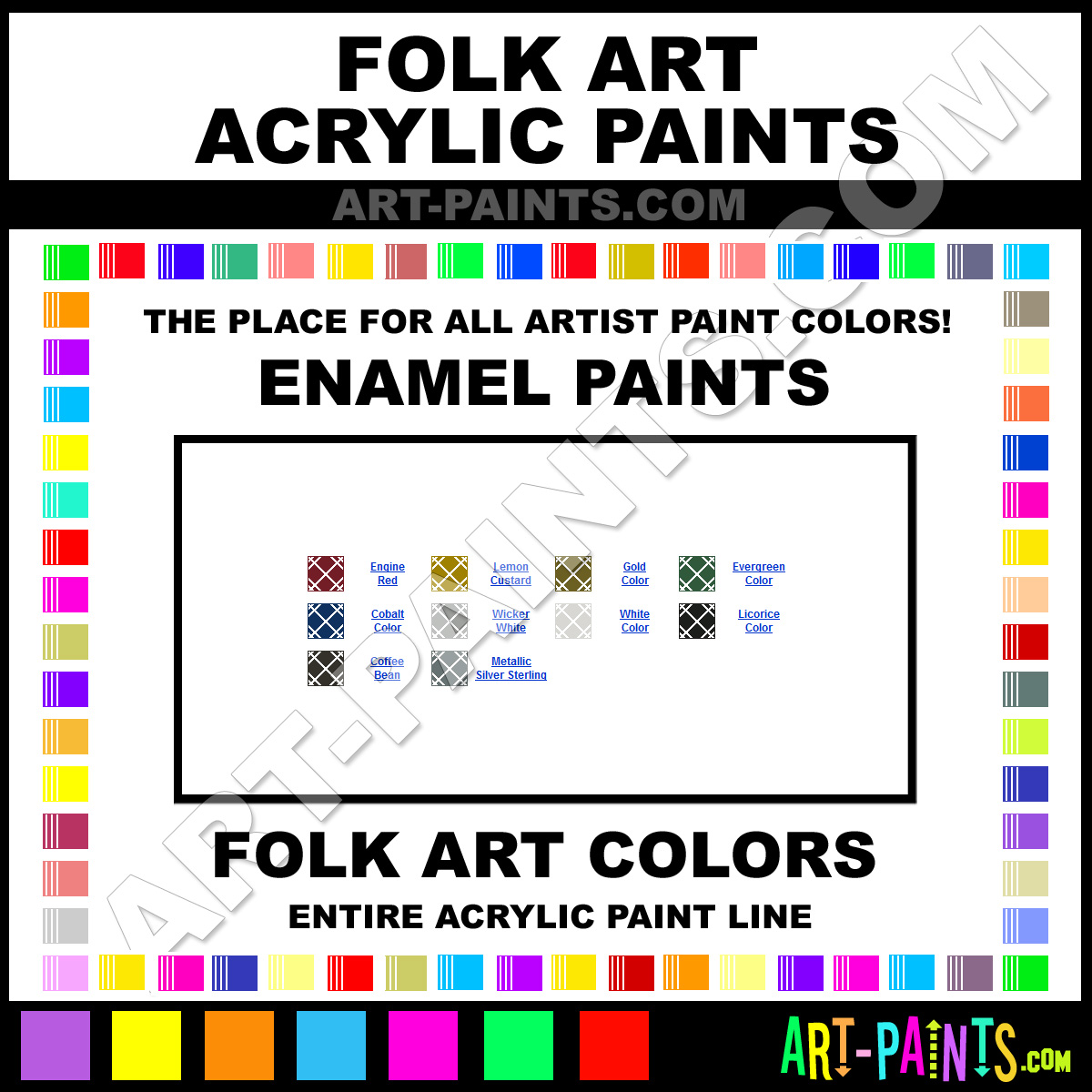 Folk Art knows Acrylic paints! They make a wonderful brand of paint called Folk Art Enamels Acrylic Colors that suits all types of artists. They strive to perfect the process of color and are one of the most popular Acrylic Paint Brand companies in the world. Enjoy their entire paint brand collection from the list below. Folk Art makes wonderful Artists Paints that everyone is sure to enjoy! Choose an Acrylic Paint Color below to view that Hue and all their great related color paints. Paint on!     -Art-Paints.com