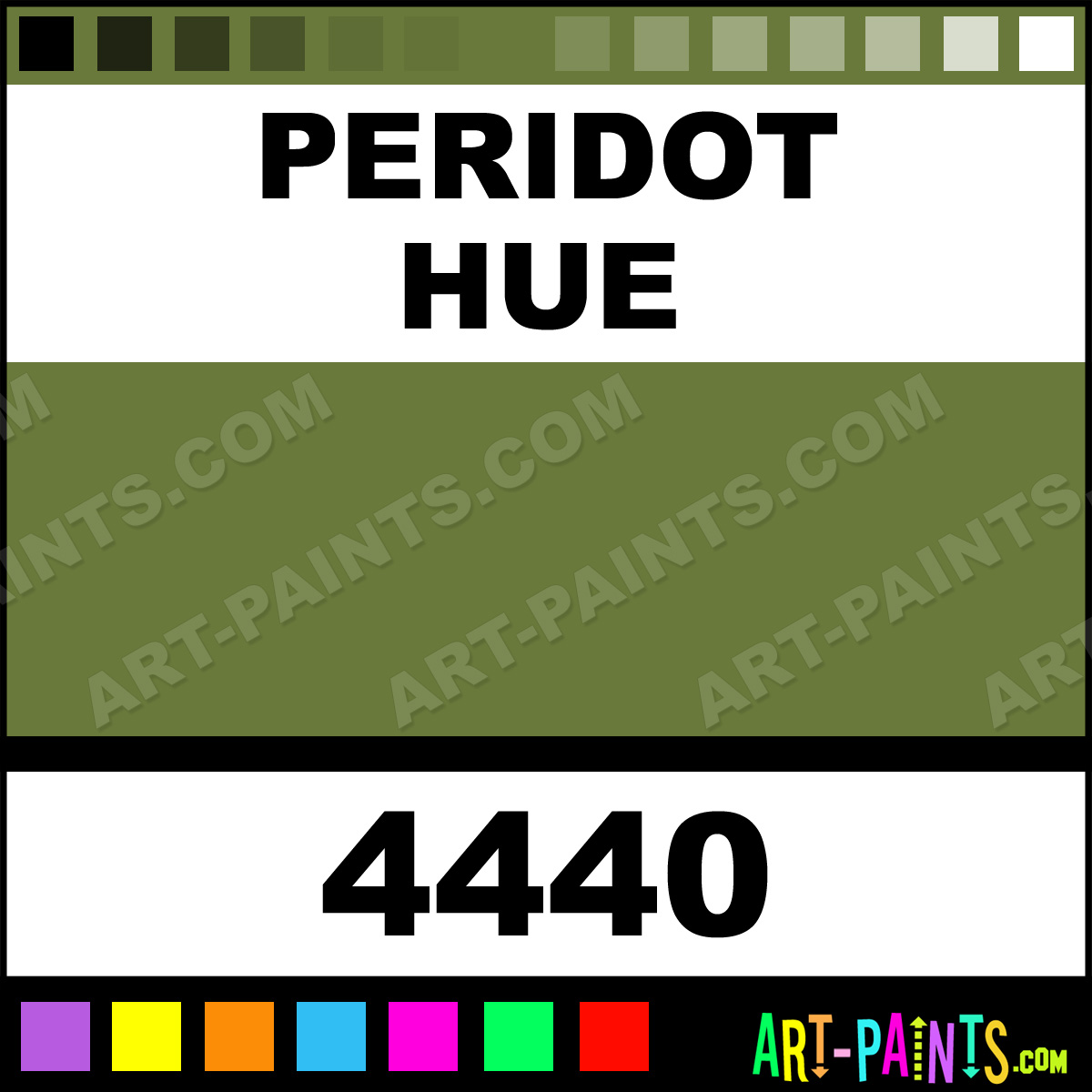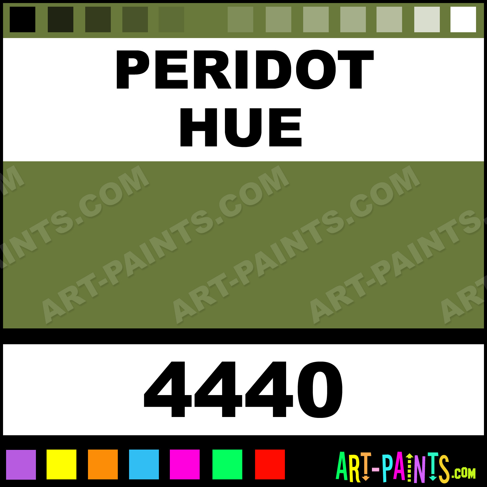 This beautiful Fabric Acrylic shade is called Peridot, and comes from a company called Folk Art. Their product number, along with the HTML color code, RGB, and CMYK codes are listed below. This Beautiful Shade of Peridot and others can be found in the Folk Art Fabric Art Paint Gallery! Also be sure to browse through the other wonderful Professional Color Galleries to see more of Folk Art Fabric Acrylic Brand Paints and other Paint Manufacturers. And as always, Paint Paint Paint! -Art-Paints.com