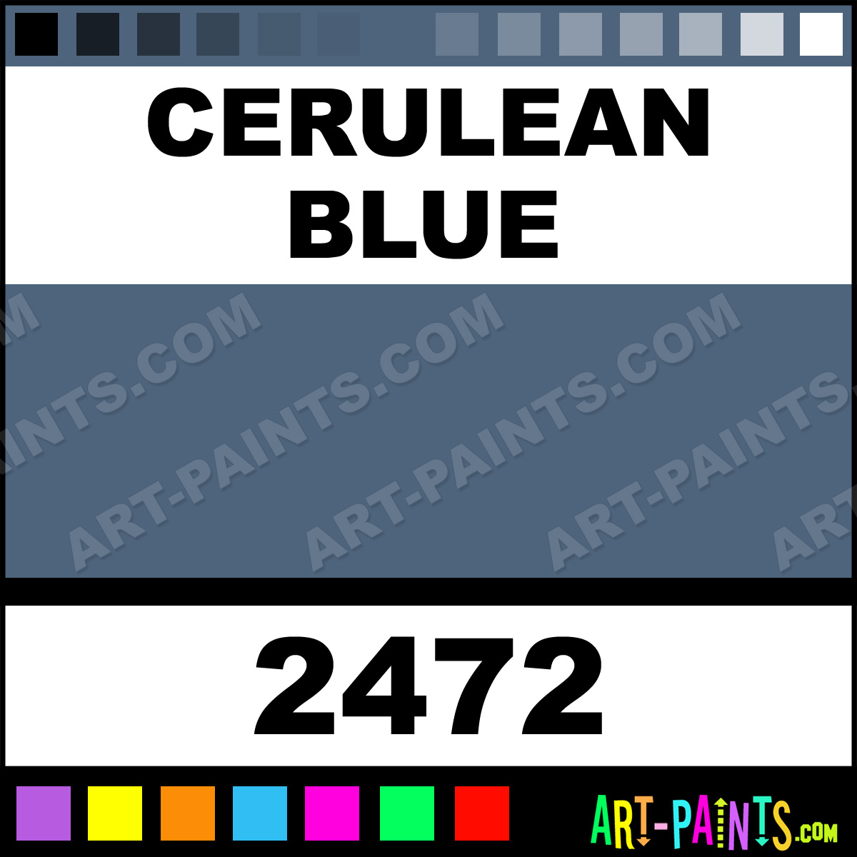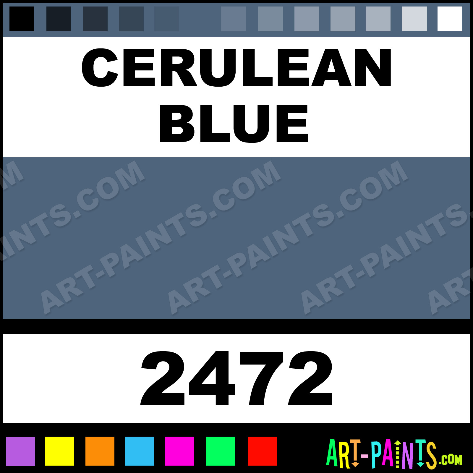 This beautiful Outdoor Acrylic shade is called Cerulean Blue, and comes from a company called Folk Art. Their product number, along with the HTML color code, RGB, and CMYK codes are listed below. This Beautiful Shade of Cerulean Blue and others can be found in the Folk Art Outdoor Art Paint Gallery! Also be sure to browse through the other wonderful Professional Color Galleries to see more of Folk Art Outdoor Acrylic Brand Paints and other Paint Manufacturers. And as always, Paint Paint Paint! -Art-Paints.com