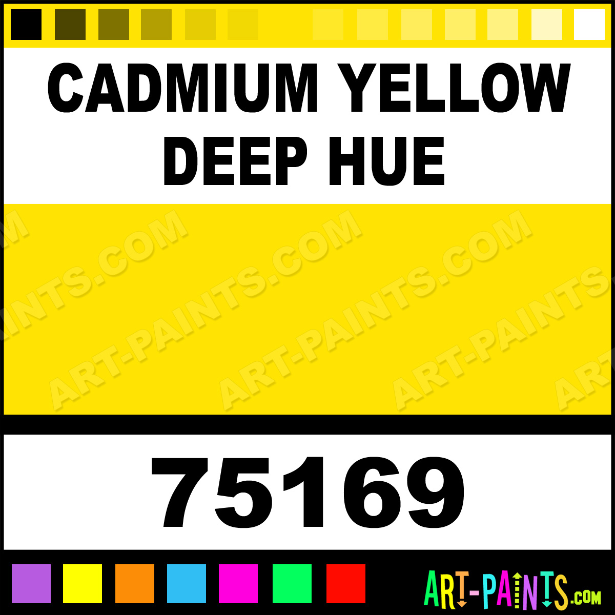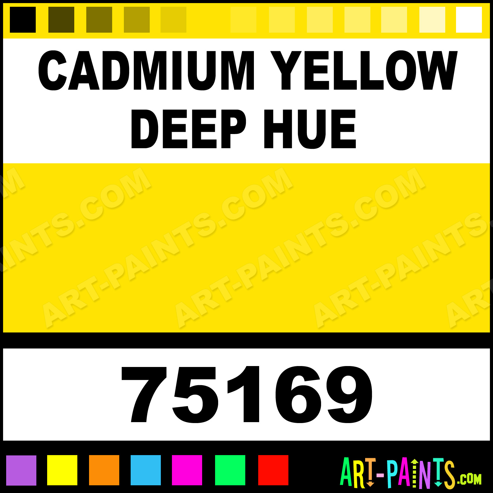 This beautiful Artist Acrylic shade is called Cadmium Yellow Deep Hue, and comes from a company called Fundamentals. Their product number, along with the HTML color code, RGB, and CMYK codes are listed below. This Beautiful Shade of Cadmium Yellow Deep Hue and others can be found in the Fundamentals Artist Art Paint Gallery! Also be sure to browse through the other wonderful Professional Color Galleries to see more of Fundamentals Artist Acrylic Brand Paints and other Paint Manufacturers. And as always, Paint Paint Paint! -Art-Paints.com