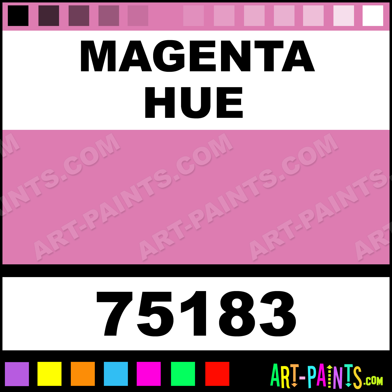 This beautiful Artist Acrylic shade is called Magenta, and comes from a company called Fundamentals. Their product number, along with the HTML color code, RGB, and CMYK codes are listed below. This Beautiful Shade of Magenta and others can be found in the Fundamentals Artist Art Paint Gallery! Also be sure to browse through the other wonderful Professional Color Galleries to see more of Fundamentals Artist Acrylic Brand Paints and other Paint Manufacturers. And as always, Paint Paint Paint! -Art-Paints.com