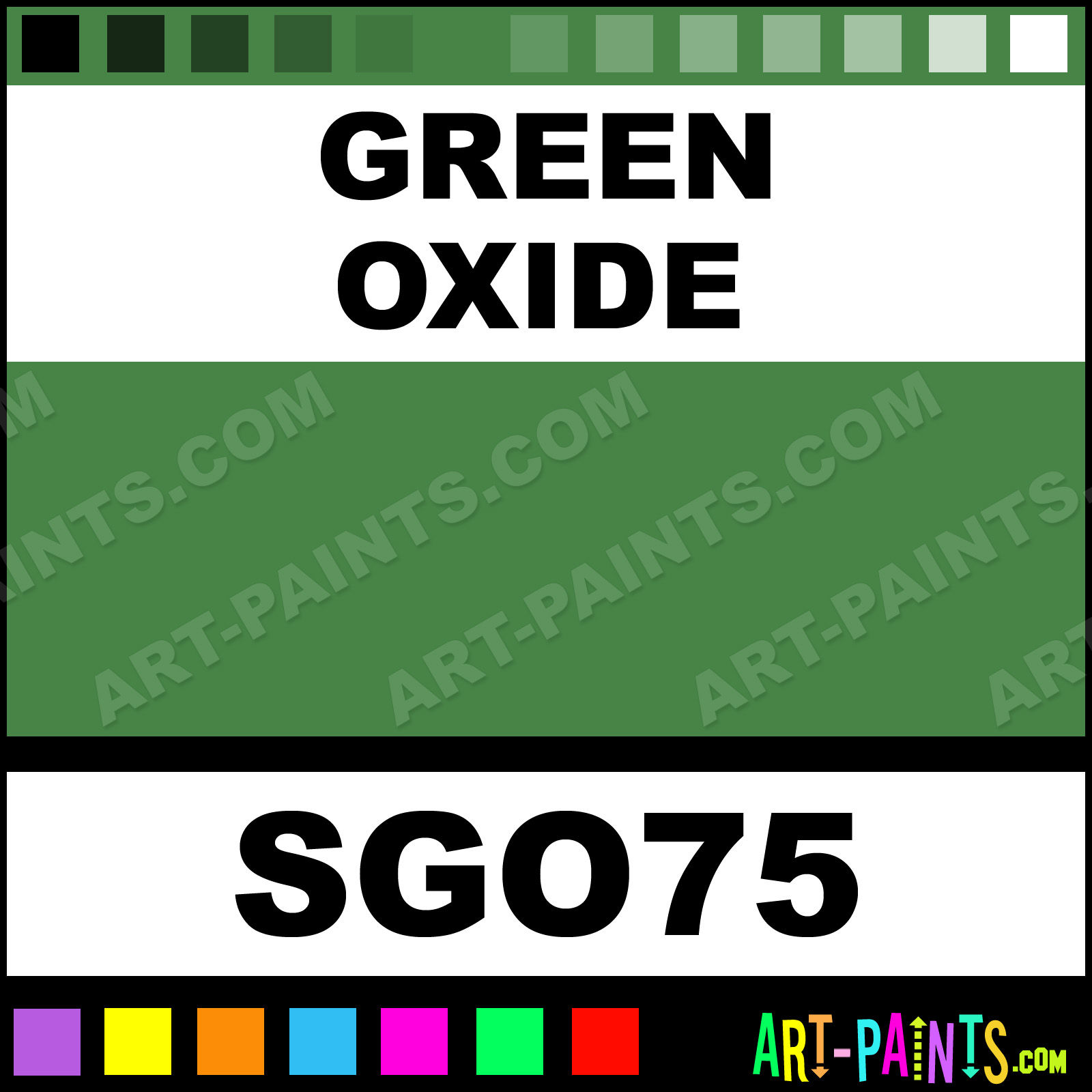 This beautiful Student Acrylic shade is called Green Oxide, and comes from a company called Global Colours. Their product number, along with the HTML color code, RGB, and CMYK codes are listed below. This Beautiful Shade of Green Oxide and others can be found in the Global Colours Student Art Paint Gallery! Also be sure to browse through the other wonderful Professional Color Galleries to see more of Global Colours Student Acrylic Brand Paints and other Paint Manufacturers. And as always, Paint Paint Paint! -Art-Paints.com