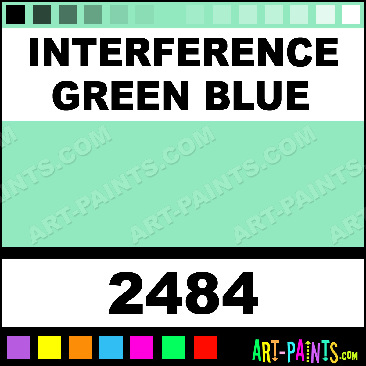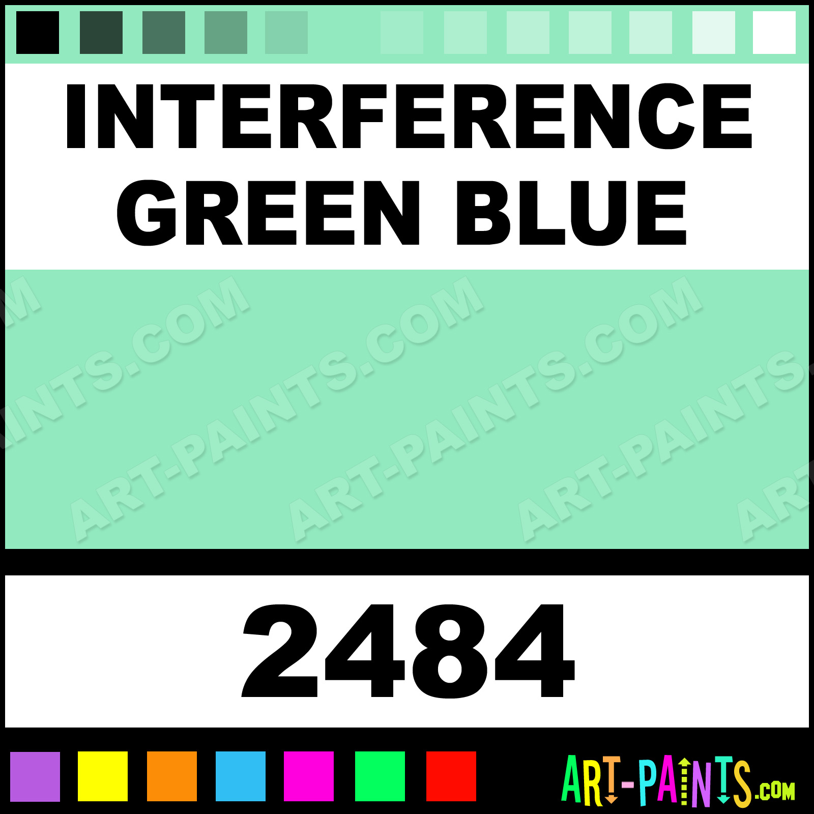 This beautiful Fluid Acrylic shade is called Interference Green Blue, and comes from a company called Golden. Their product number, along with the HTML color code, RGB, and CMYK codes are listed below. This Beautiful Shade of Interference Green Blue and others can be found in the Golden Fluid Art Paint Gallery! Also be sure to browse through the other wonderful Professional Color Galleries to see more of Golden Fluid Acrylic Brand Paints and other Paint Manufacturers. And as always, Paint Paint Paint! -Art-Paints.com