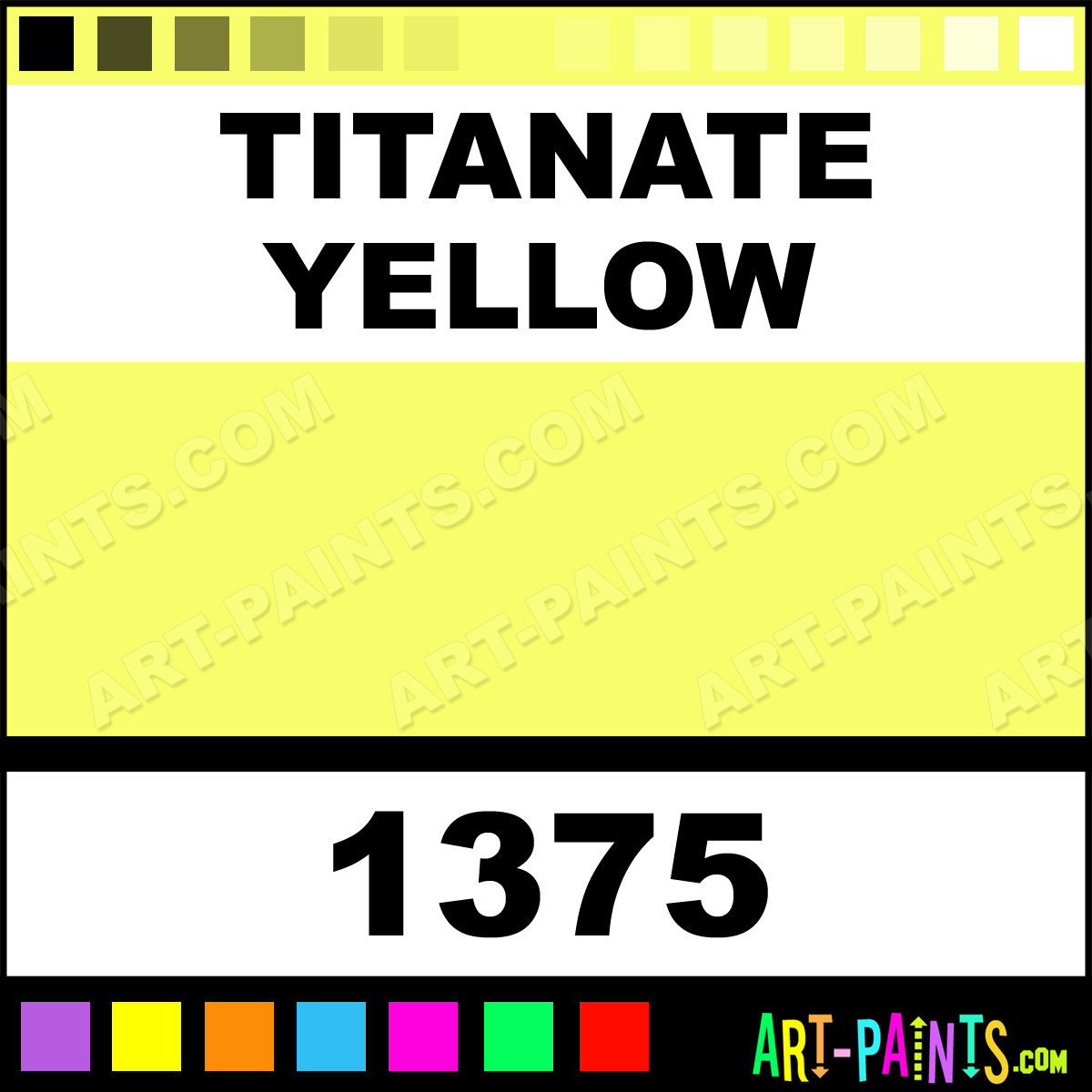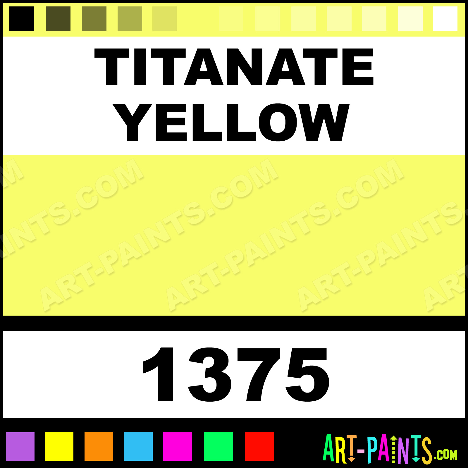 This beautiful Heavy Body Acrylic shade is called Titanate Yellow, and comes from a company called Golden. Their product number, along with the HTML color code, RGB, and CMYK codes are listed below. This Beautiful Shade of Titanate Yellow and others can be found in the Golden Heavy Body Art Paint Gallery! Also be sure to browse through the other wonderful Professional Color Galleries to see more of Golden Heavy Body Acrylic Brand Paints and other Paint Manufacturers. And as always, Paint Paint Paint! -Art-Paints.com